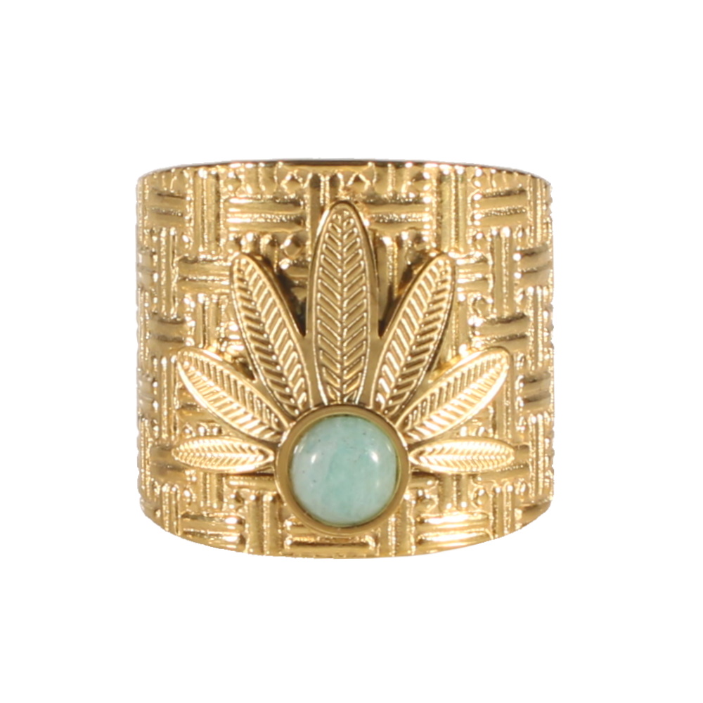 Description Bague large avec motifs surmontée d'une coiffe d'indien en acier doré sertie d'une pierre de couleur verte. Taille ajustable. Largeur 18 mm Matière(s) Acier , Rocaille . L'acier utilisé dans la bijouterie existe sous plusieurs qualités. Nous utilisons principalement la qualité 316L, qualité qui est utilisée en chirurgie. Cet acier est donc inoxydable et reste très résistant. Couleur(s) dominante(s) Doré , Vert Public Adolescent , Adulte . Genre Femme , Fille . Saison Indémodable . Collection Indian spirit Cliquez sur une matière, un thème, une couleur ou une collection pour voir tous les articles associés.