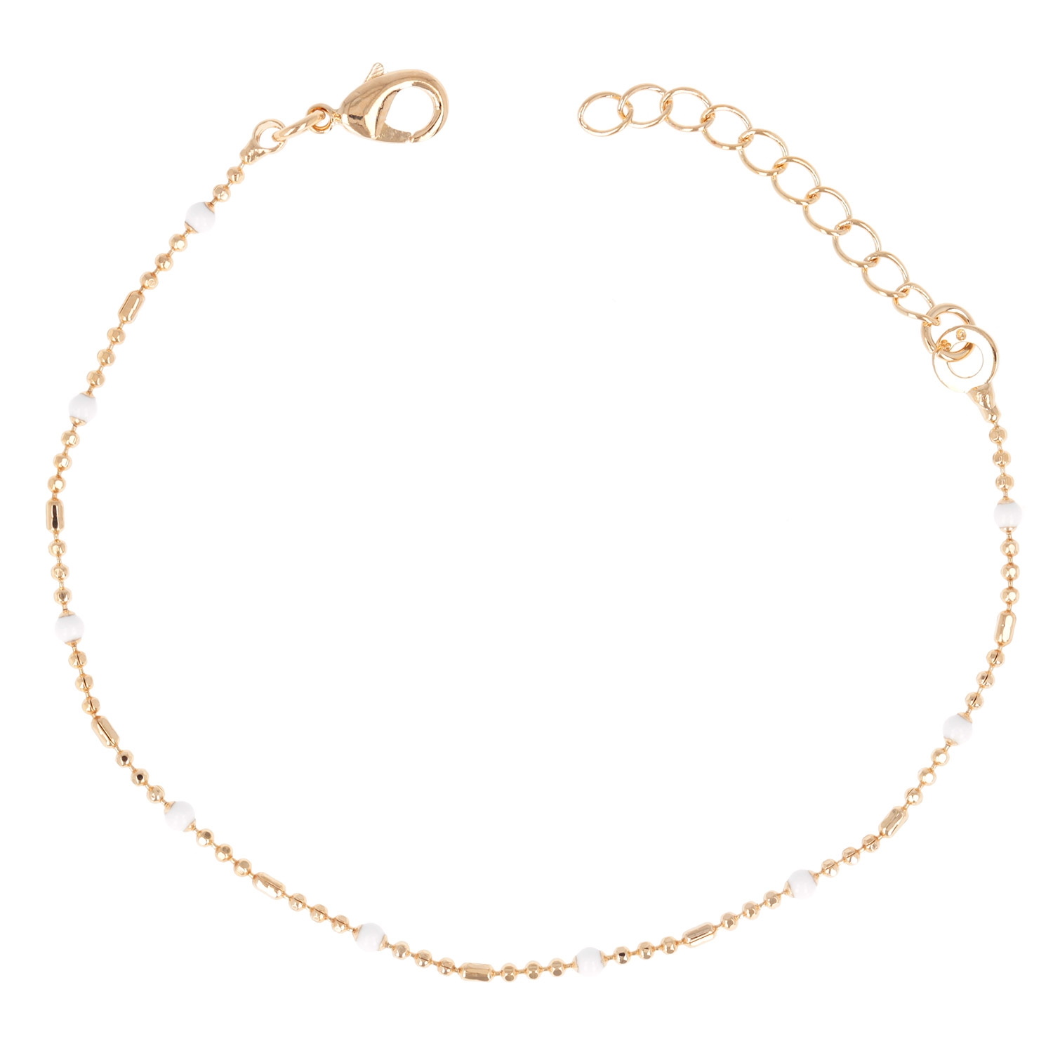 Bracelet composé d'une chaîne en plaqué or jaune 18 carats et perles en émail de couleur blanche.