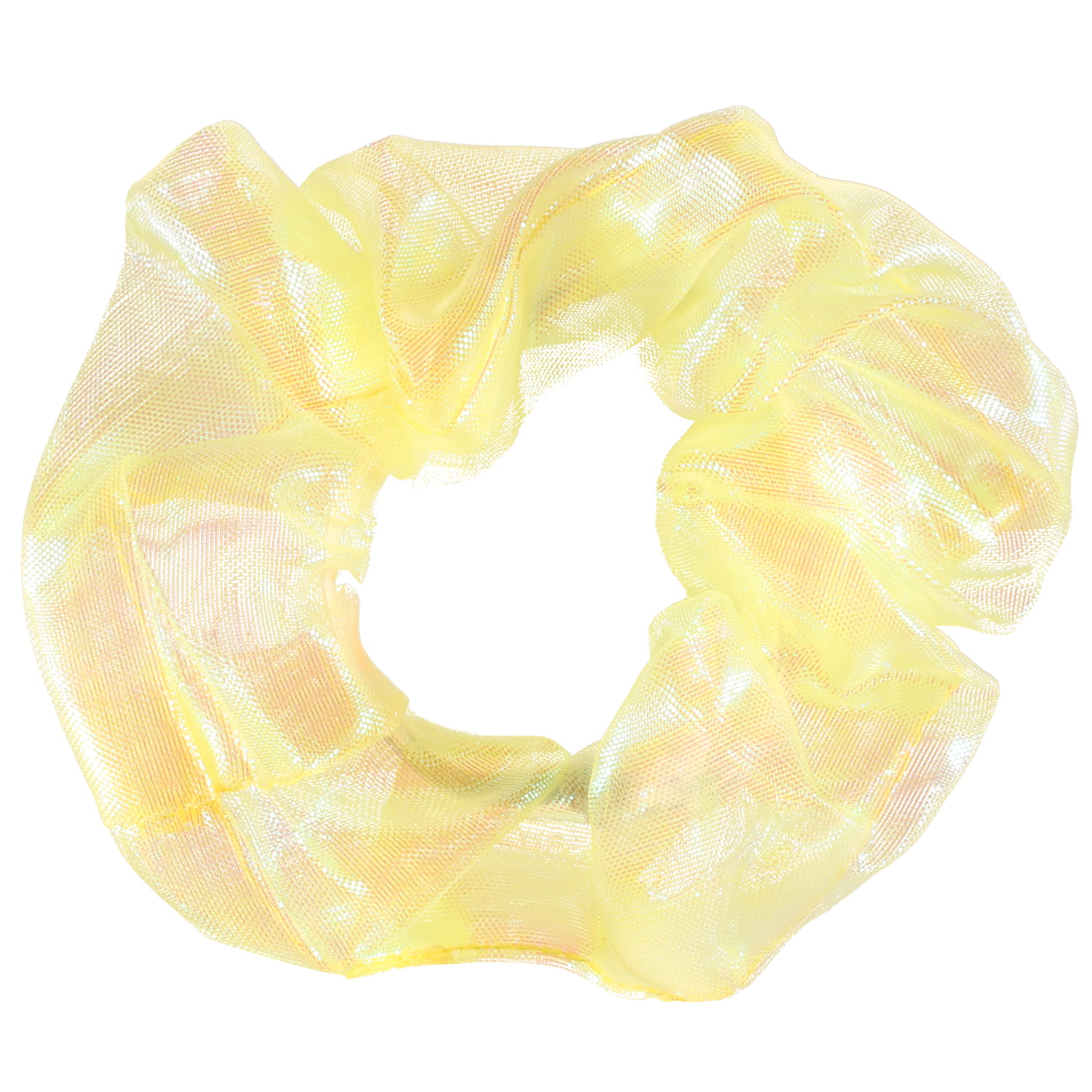 Chouchou élastique pour cheveux en matière synthétique de couleur jaune brillant.