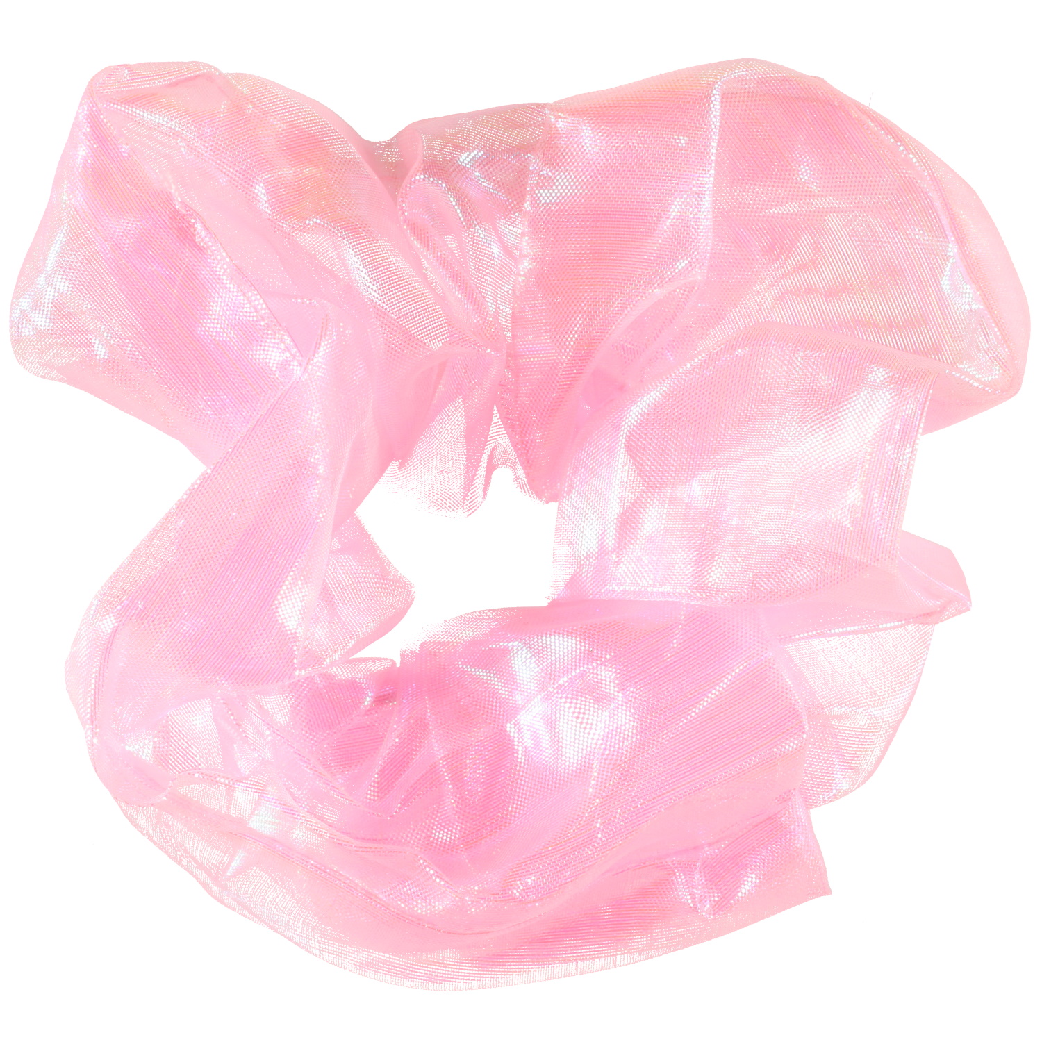 Chouchou élastique pour cheveux en matière synthétique de couleur rose brillant.