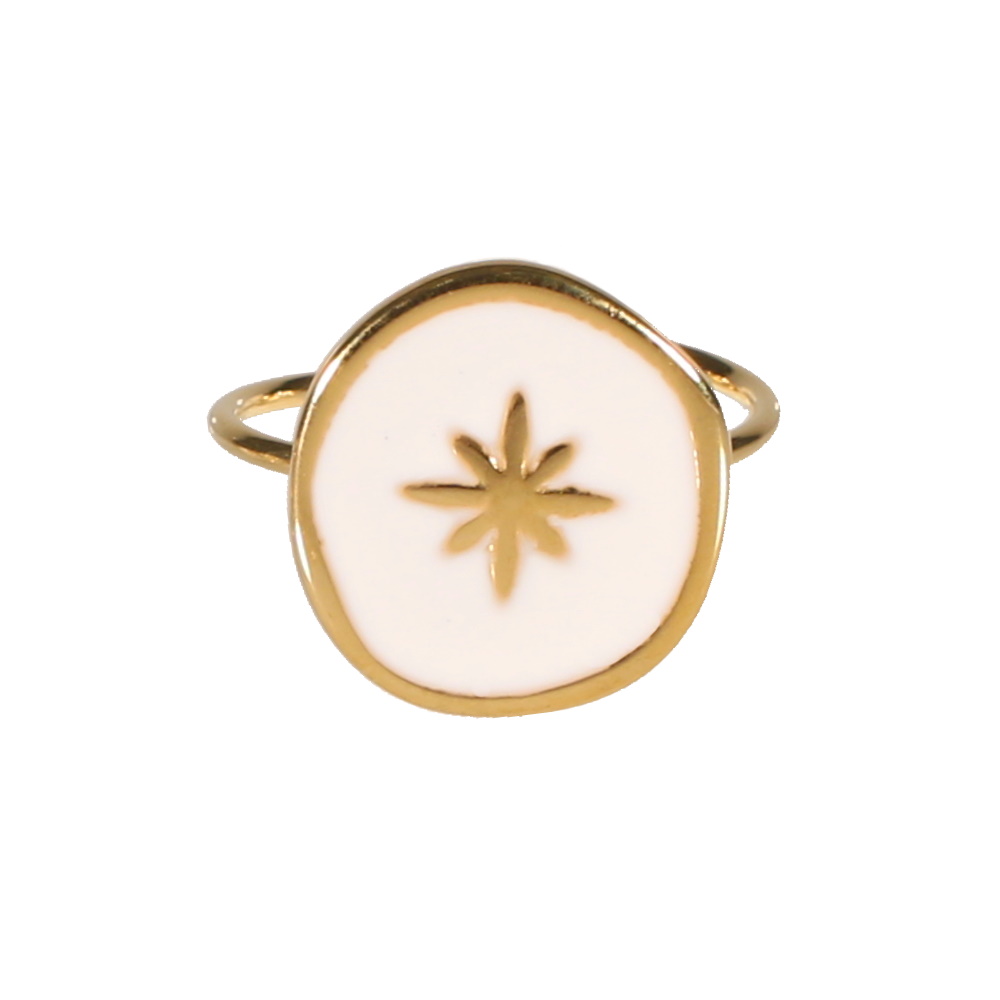 Description Bague en acier doré surmontée d'une pastille pavée d'émail de couleur blanche avec une étoile en acier doré. Taille ajustable. Largeur 16 mm Matière(s) Acier , Email . L'acier utilisé dans la bijouterie existe sous plusieurs qualités. Nous utilisons principalement la qualité 316L, qualité qui est utilisée en chirurgie. Cet acier est donc inoxydable et reste très résistant. Fermoir Aucun Couleur(s) dominante(s) Blanc , Doré Public Adolescent , Adulte . Genre Femme , Fille . Saison Indémodable . Thème(s) Nature . Cliquez sur une matière, un thème, une couleur ou une collection pour voir tous les articles associés.