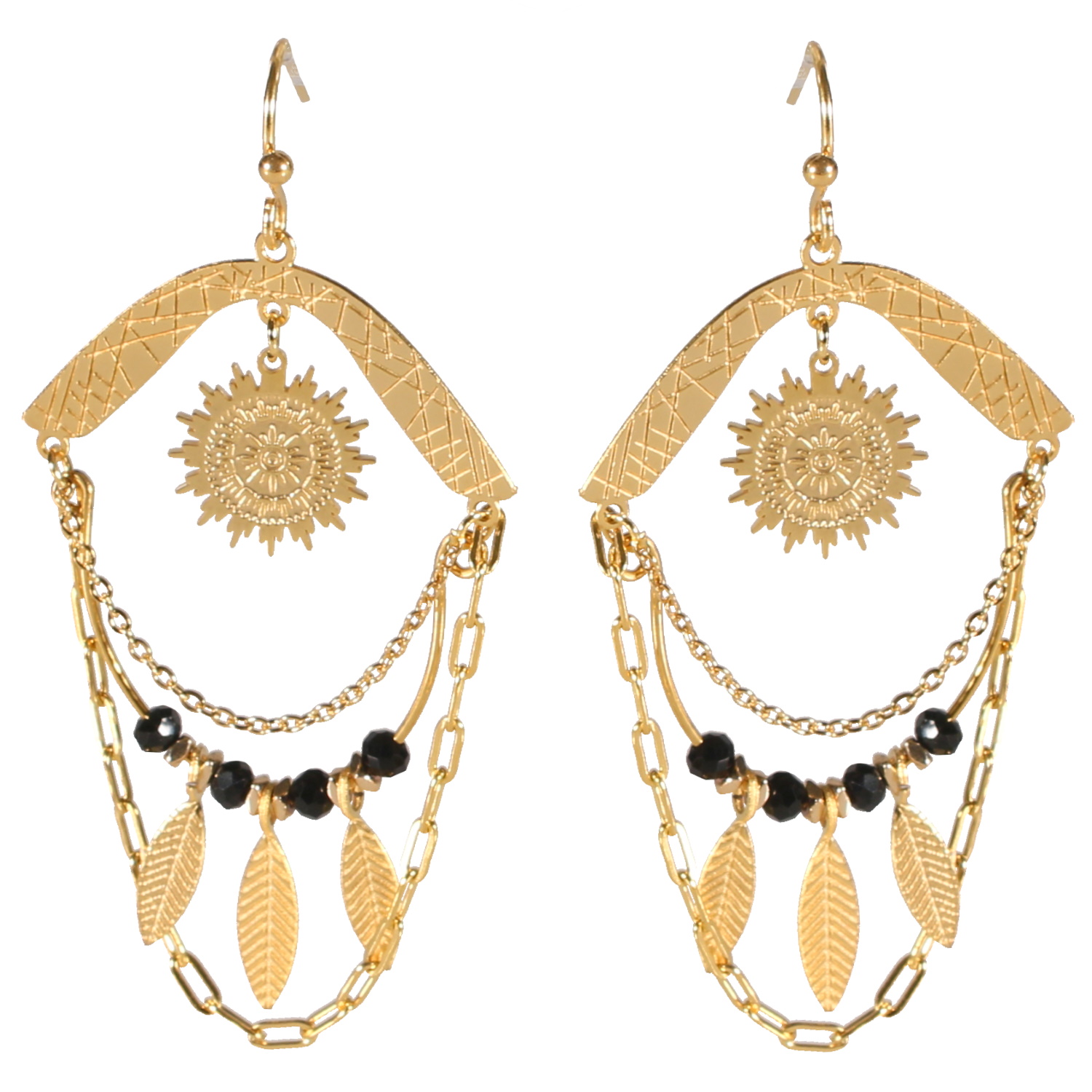 Description Boucles d'oreilles pendantes avec chaînettes, plumes et soleil en acier doré et perles de couleur noire. Largeur 30 mm Hauteur 60 mm Matière(s) Acier , Rocaille . L'acier utilisé dans la bijouterie existe sous plusieurs qualités. Nous utilisons principalement la qualité 316L, qualité qui est utilisée en chirurgie. Cet acier est donc inoxydable et reste très résistant. Fermoir Crochets Couleur(s) dominante(s) Doré , Noir Public Adolescent , Adulte . Genre Femme , Fille . Saison Indémodable . Thème(s) Nature . Collection Indian spirit Cliquez sur une matière, un thème, une couleur ou une collection pour voir tous les articles associés.