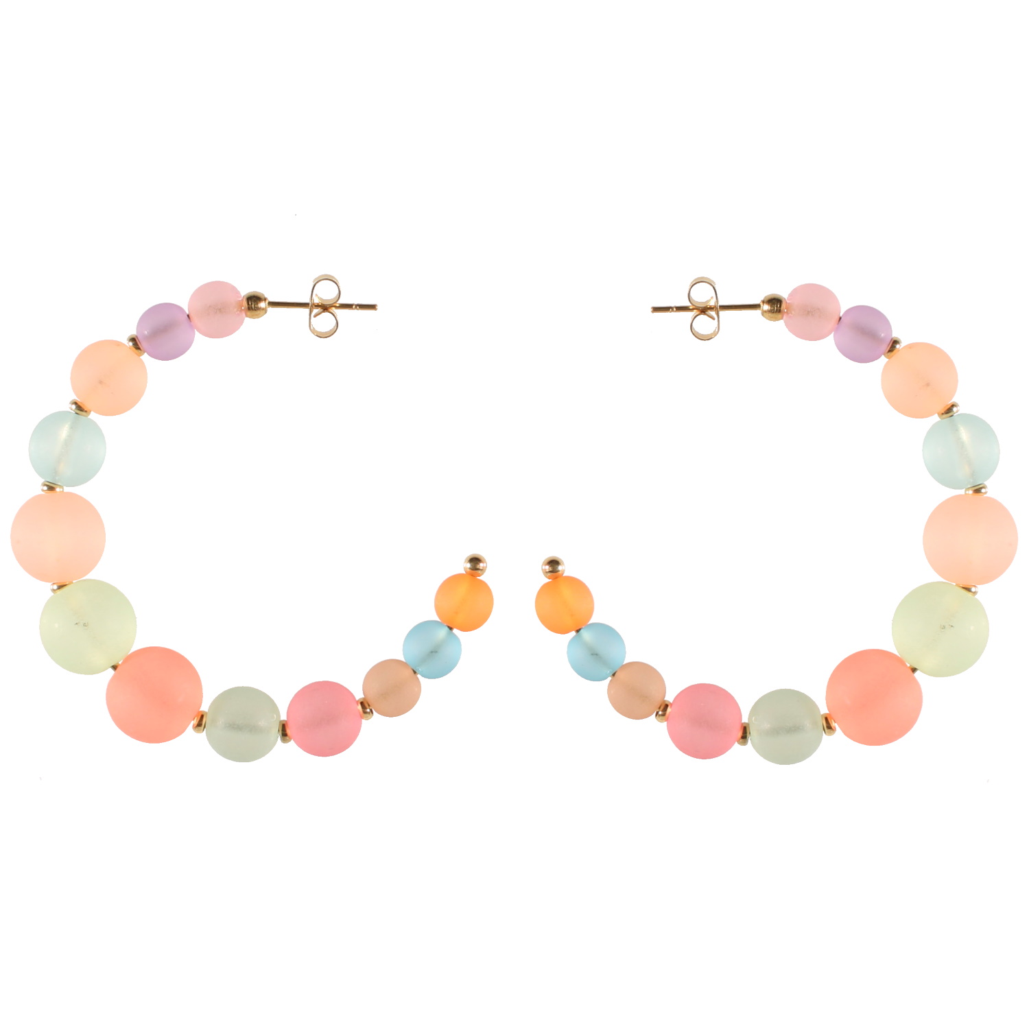 Boucles d'oreilles créoles ouvertes en acier doré surmontées de perles multicolores.