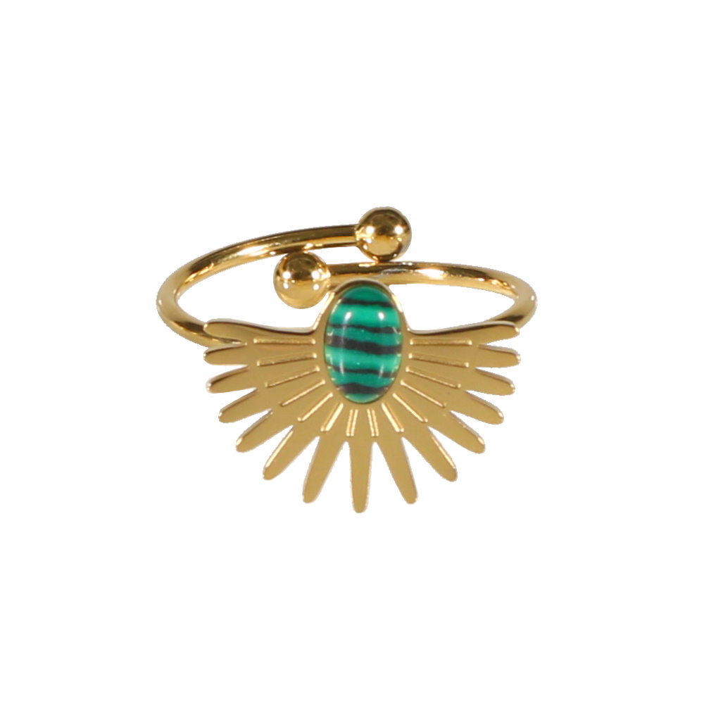 Description Bague en forme d'épouvantail en acier doré surmontée d'une pierre d'imitation malachite. Taille ajustable. Largeur 12 mm Matière(s) Acier , Rocaille . L'acier utilisé dans la bijouterie existe sous plusieurs qualités. Nous utilisons principalement la qualité 316L, qualité qui est utilisée en chirurgie. Cet acier est donc inoxydable et reste très résistant. Fermoir Aucun Couleur(s) dominante(s) Doré , Vert Public Adolescent , Adulte . Genre Femme , Fille . Saison Indémodable . Cliquez sur une matière, un thème, une couleur ou une collection pour voir tous les articles associés.