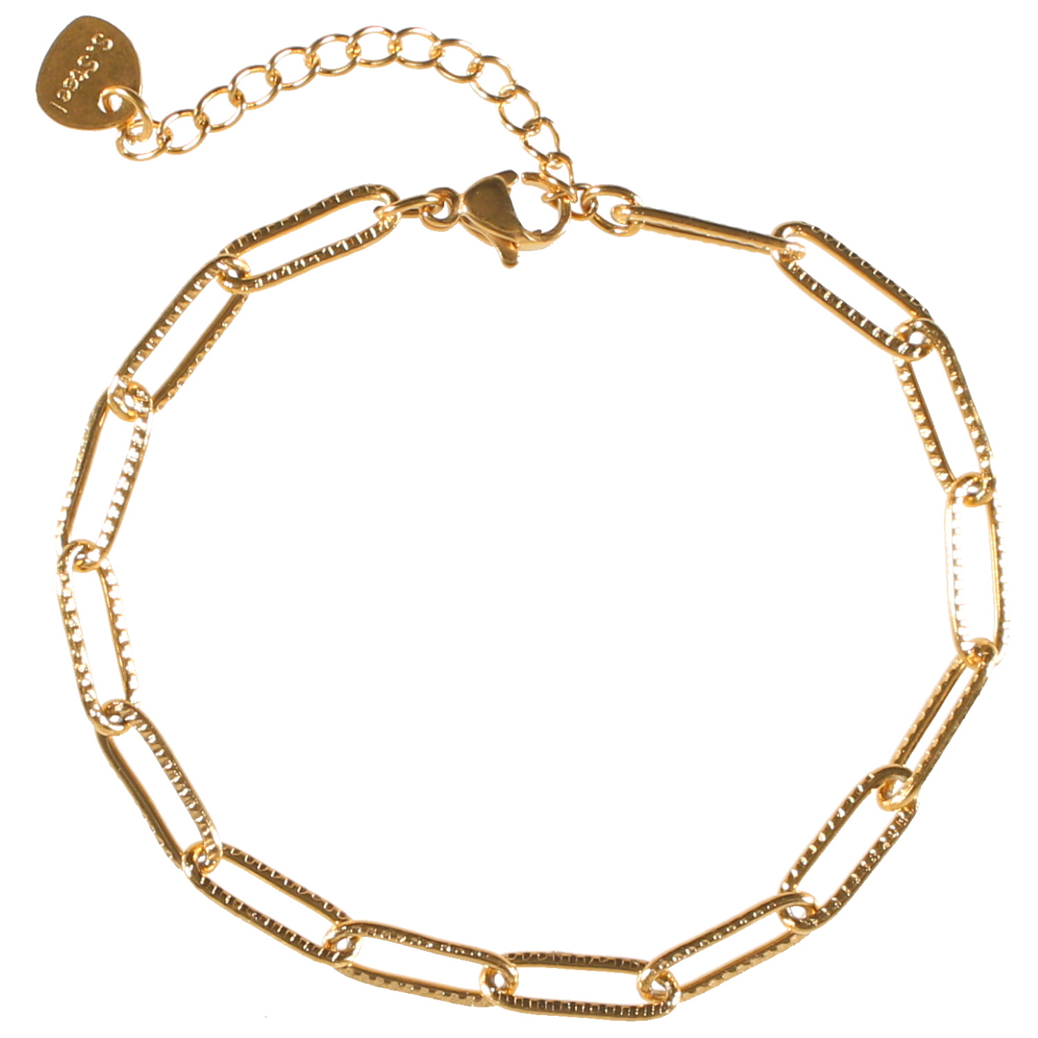 Description Bracelet composé d'une chaîne en acier doré. Fermoir mousqueton avec 4 cm de rallonge. Cliquez sur une matière, un thème, une couleur ou une collection pour voir tous les articles associés.