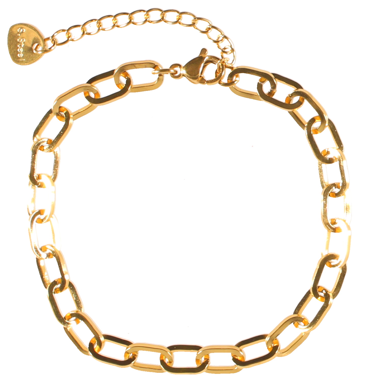 Description Bracelet composé d'une chaîne en acier doré. Fermoir mousqueton avec 4 cm de rallonge. Cliquez sur une matière, un thème, une couleur ou une collection pour voir tous les articles associés.