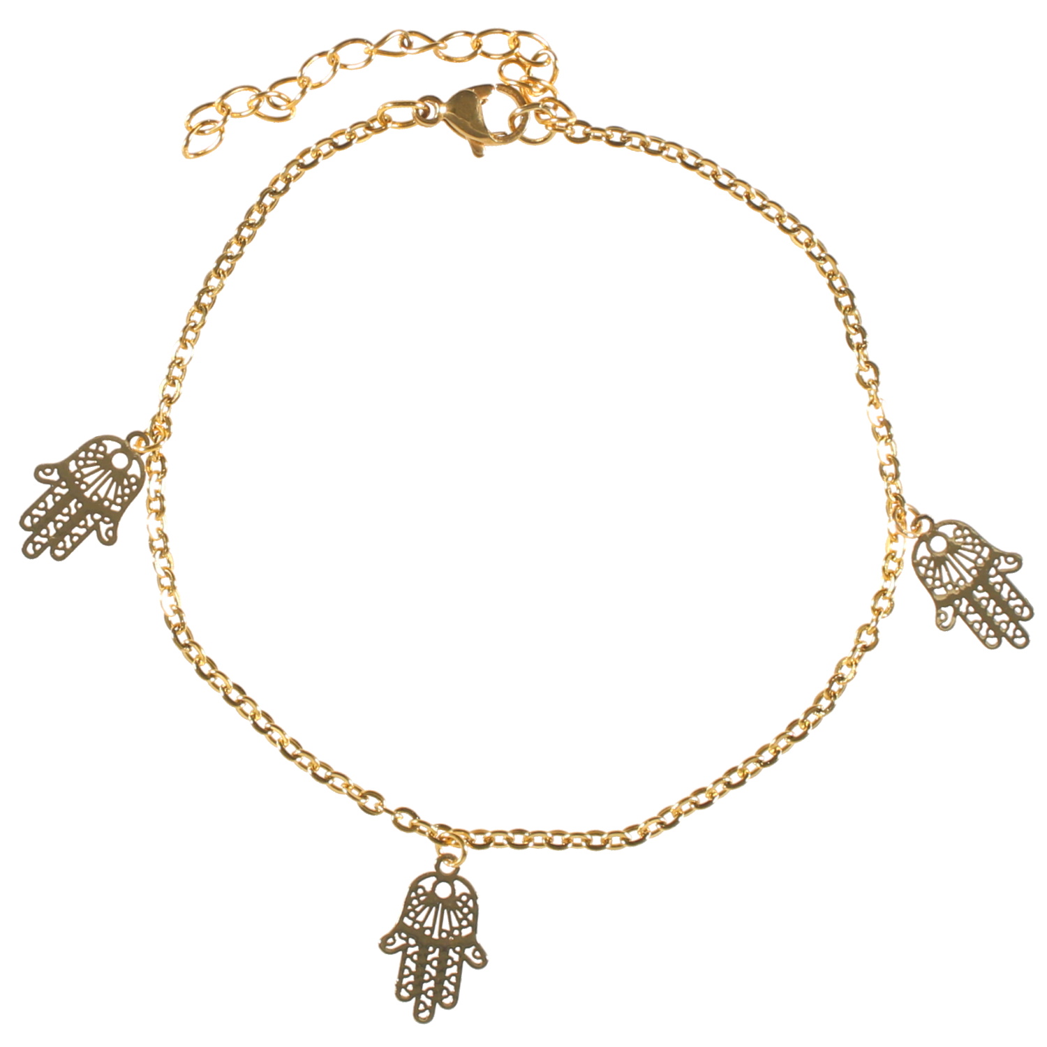Description Bracelet composé d'une chaîne avec trois pendants main de Fatma en acier doré. Fermoir mousqueton avec 5 cm de rallonge. Longueur 18+5 cm [Guide des tailles] Largeur 15 mm Matière(s) Acier . L'acier utilisé dans la bijouterie existe sous plusieurs qualités. Nous utilisons principalement la qualité 316L, qualité qui est utilisée en chirurgie. Cet acier est donc inoxydable et reste très résistant. Fermoir Mousqueton Couleur(s) dominante(s) Doré Public Adolescent , Adulte . Genre Femme , Fille . Saison Indémodable . Thème(s) Religion , Symboles . Cliquez sur une matière, un thème, une couleur ou une collection pour voir tous les articles associés.