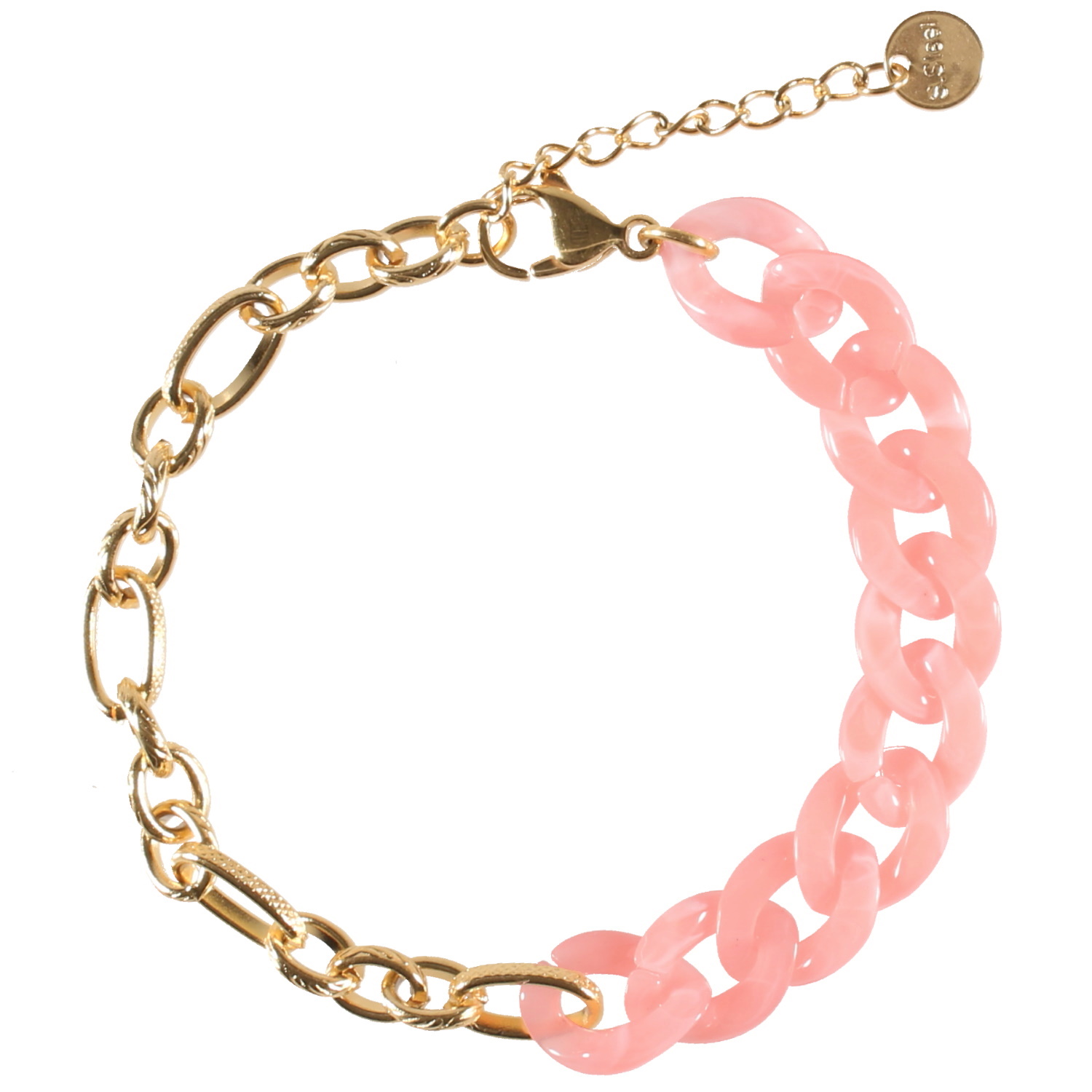 Description Bracelet composé d'une chaîne en acier doré et d'une chaîne en maille en matière synthétique de couleur rose. Fermoir mousqueton avec 3 cm de rallonge. Longueur 18+3 cm [Guide des tailles] Largeur 10 mm Matière(s) Acier , Plastique . L'acier utilisé dans la bijouterie existe sous plusieurs qualités. Nous utilisons principalement la qualité 316L, qualité qui est utilisée en chirurgie. Cet acier est donc inoxydable et reste très résistant. Fermoir Mousqueton Couleur(s) dominante(s) Doré , Rose Public Adolescent , Adulte . Genre Femme , Fille . Saison Indémodable . Cliquez sur une matière, un thème, une couleur ou une collection pour voir tous les articles associés.