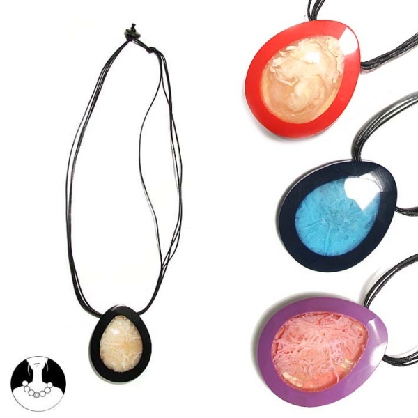 Collier sautoir fantaisie avec pendentif en résine faite main.