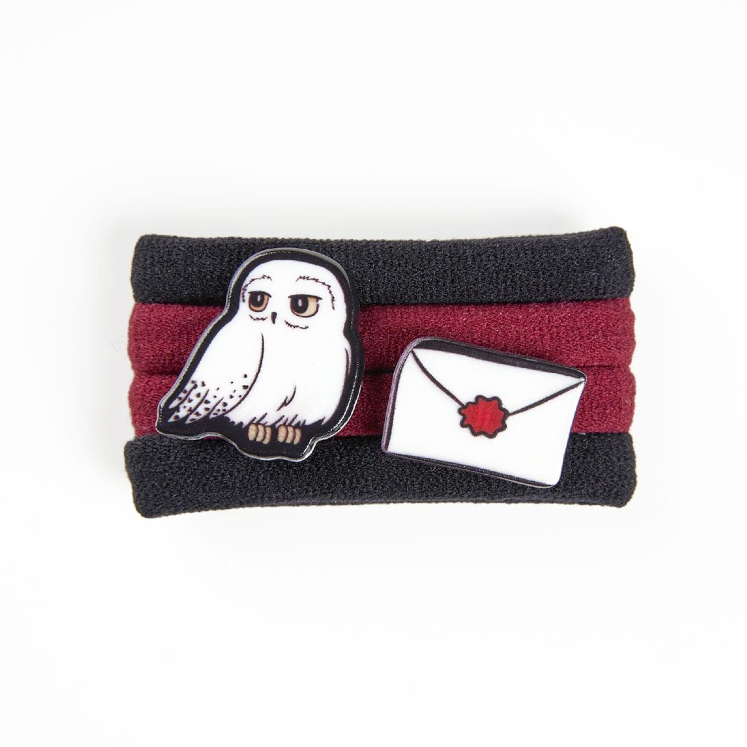Lot de 4 élastiques cheveux pour enfant en textile de couleur avec personnages et symboles d'Harry Potter.