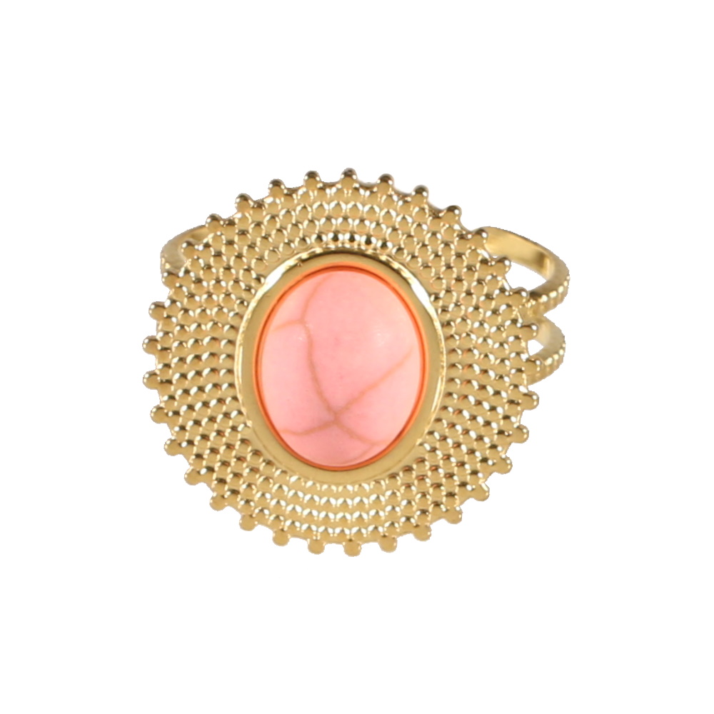 Description Bague en forme de soleil en acier doré surmontée d'une pierre de couleur rose sertie clos de forme ovale. Taille ajustable. Largeur 20 mm Matière(s) Acier , Rocaille . L'acier utilisé dans la bijouterie existe sous plusieurs qualités. Nous utilisons principalement la qualité 316L, qualité qui est utilisée en chirurgie. Cet acier est donc inoxydable et reste très résistant. Fermoir Aucun Couleur(s) dominante(s) Doré , Rose Public Adolescent , Adulte . Genre Femme , Fille . Saison Indémodable . Thème(s) Nature . Cliquez sur une matière, un thème, une couleur ou une collection pour voir tous les articles associés.