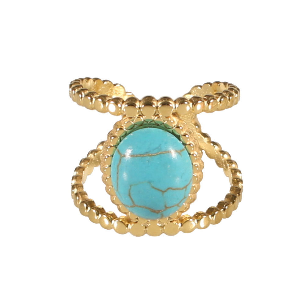 Description Bague en acier doré surmontée d'une pierre d'imitation turquoise sertie clos de forme ovale. Taille ajustable. Largeur 18 mm Matière(s) Acier , Rocaille . L'acier utilisé dans la bijouterie existe sous plusieurs qualités. Nous utilisons principalement la qualité 316L, qualité qui est utilisée en chirurgie. Cet acier est donc inoxydable et reste très résistant. Fermoir Aucun Couleur(s) dominante(s) Bleu , Doré Public Adolescent , Adulte . Genre Femme , Fille . Saison Indémodable . Cliquez sur une matière, un thème, une couleur ou une collection pour voir tous les articles associés.