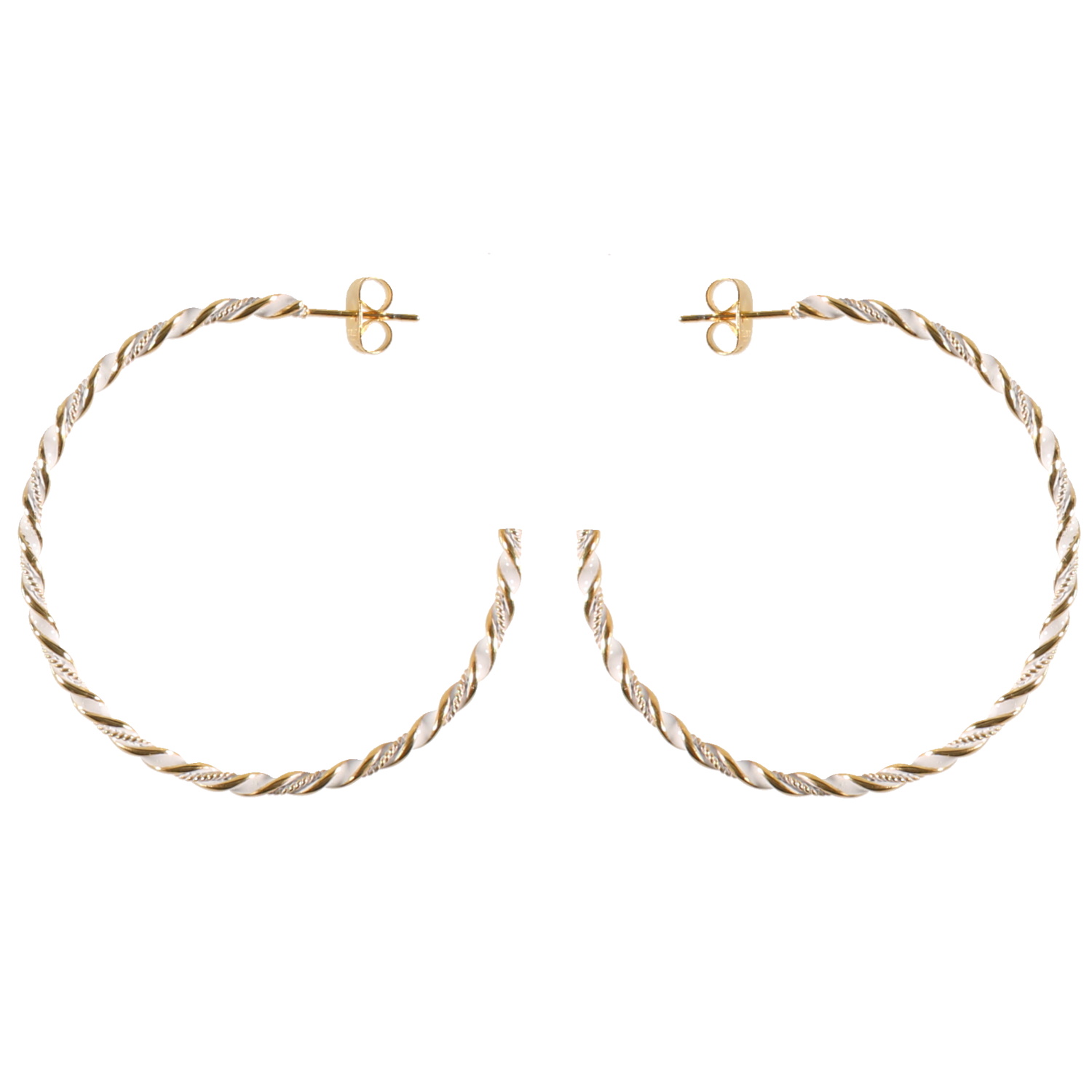 Description Boucles d'oreilles créoles ouvertes fil torsade en acier doré et émail de couleur blanche. Largeur 2 mm Diamètre 40 mm [Guide des tailles] Matière(s) Acier , Email . L'acier utilisé dans la bijouterie existe sous plusieurs qualités. Nous utilisons principalement la qualité 316L, qualité qui est utilisée en chirurgie. Cet acier est donc inoxydable et reste très résistant. Fermoir Tiges poussettes Couleur(s) dominante(s) Blanc , Doré Public Adolescent , Adulte . Genre Femme , Fille . Saison Indémodable . Cliquez sur une matière, un thème, une couleur ou une collection pour voir tous les articles associés.