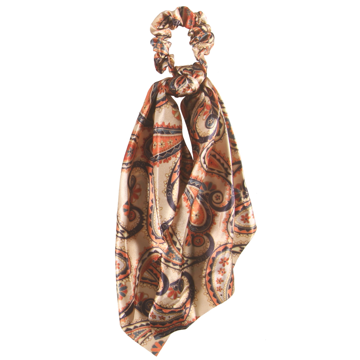 Description Chouchou élastique pour cheveux en forme de foulard noué en textile satiné de couleur avec motifs. Cliquez sur une matière, un thème, une couleur ou une collection pour voir tous les articles associés.