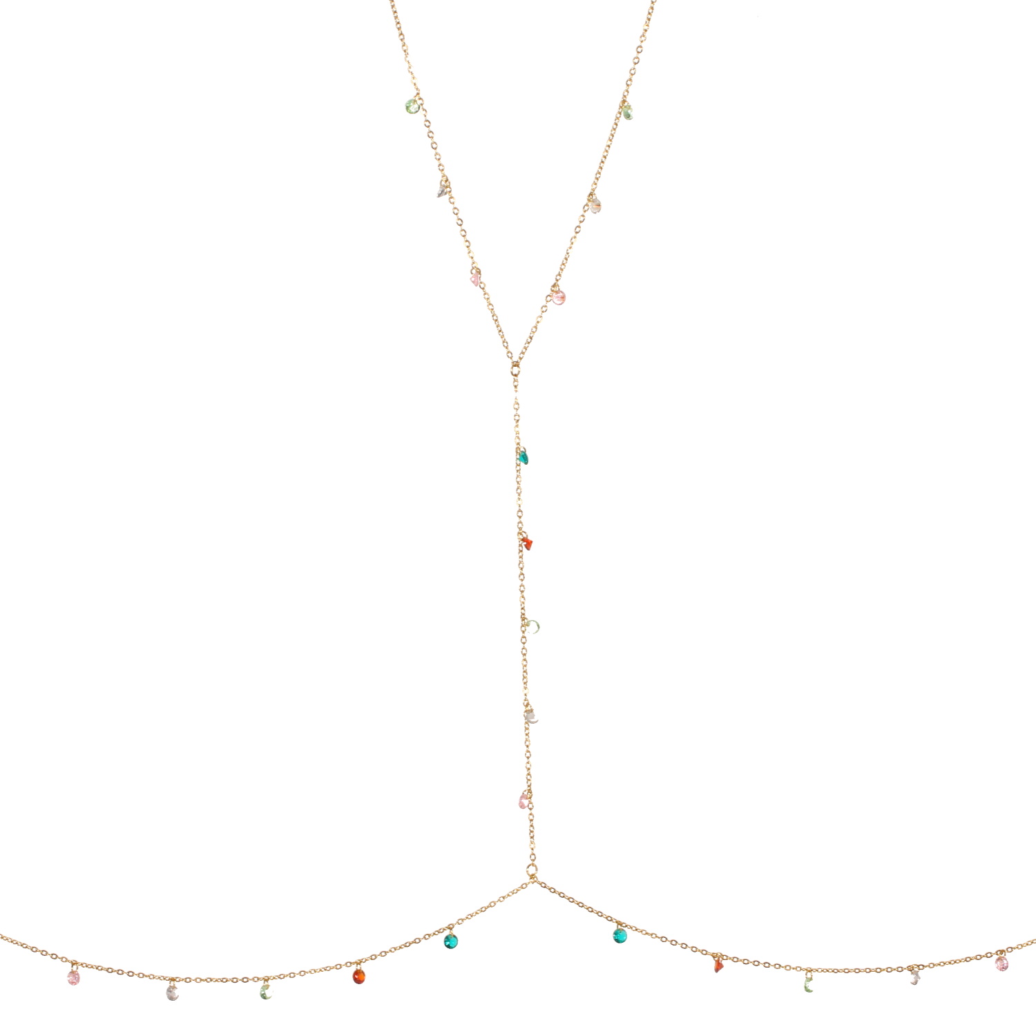 Collier tour de taille composé d'une chaîne en acier doré et de perles multicolores.