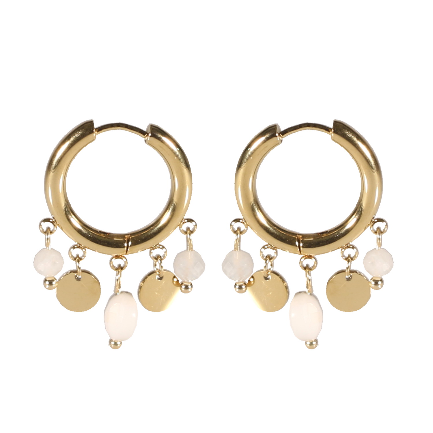 Description Boucles d'oreilles créoles avec pampilles rondes en acier doré et pampilles en perles de couleur blanche. Largeur 24 mm Hauteur 32 mm Diamètre 15 mm Matière(s) Acier , Rocaille . L'acier utilisé dans la bijouterie existe sous plusieurs qualités. Nous utilisons principalement la qualité 316L, qualité qui est utilisée en chirurgie. Cet acier est donc inoxydable et reste très résistant. Fermoir Charnière Couleur(s) dominante(s) Blanc , Doré Public Adolescent , Adulte . Genre Femme , Fille . Saison Indémodable . Cliquez sur une matière, un thème, une couleur ou une collection pour voir tous les articles associés.