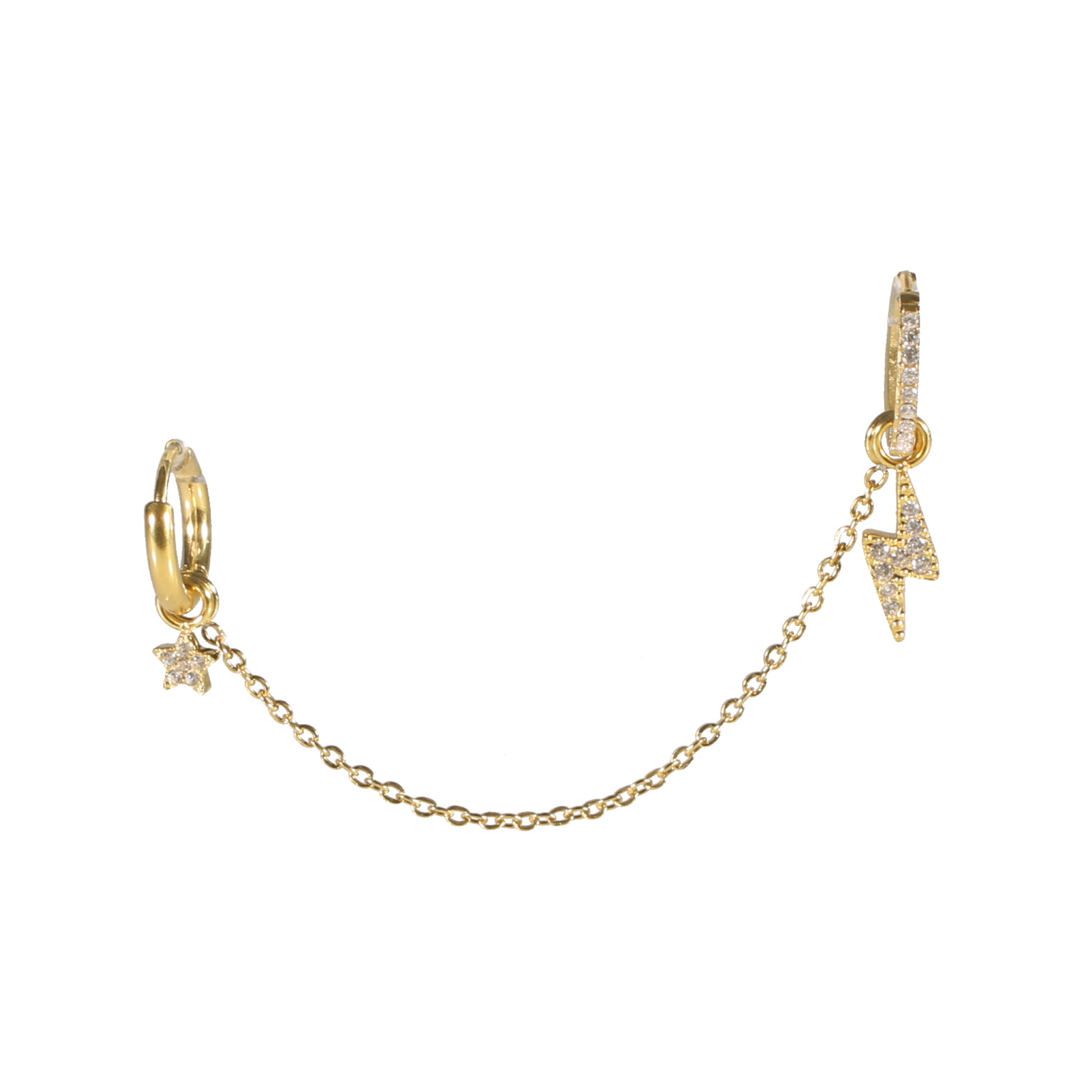 Description Boucle d'oreille créole en acier doré pavée de strass avec un pendant en forme d'éclair pavé de strass et relié par une chaînette à une boucle d'oreille créole en acier doré avec un pendant en forme d'étoile pavée de strass. Vendu à l'unité. Longueur 60 mm [Guide des tailles] Diamètre 10 mm Matière(s) Acier , Verre . L'acier utilisé dans la bijouterie existe sous plusieurs qualités. Nous utilisons principalement la qualité 316L, qualité qui est utilisée en chirurgie. Cet acier est donc inoxydable et reste très résistant. Fermoir Charnière Couleur(s) dominante(s) Doré Public Adolescent , Adulte . Genre Femme , Fille . Saison Indémodable . Thème(s) Nature . Cliquez sur une matière, un thème, une couleur ou une collection pour voir tous les articles associés.
