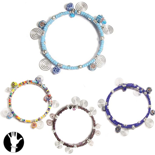 Bracelet fantaisie en perles, verre et métal argenté.
