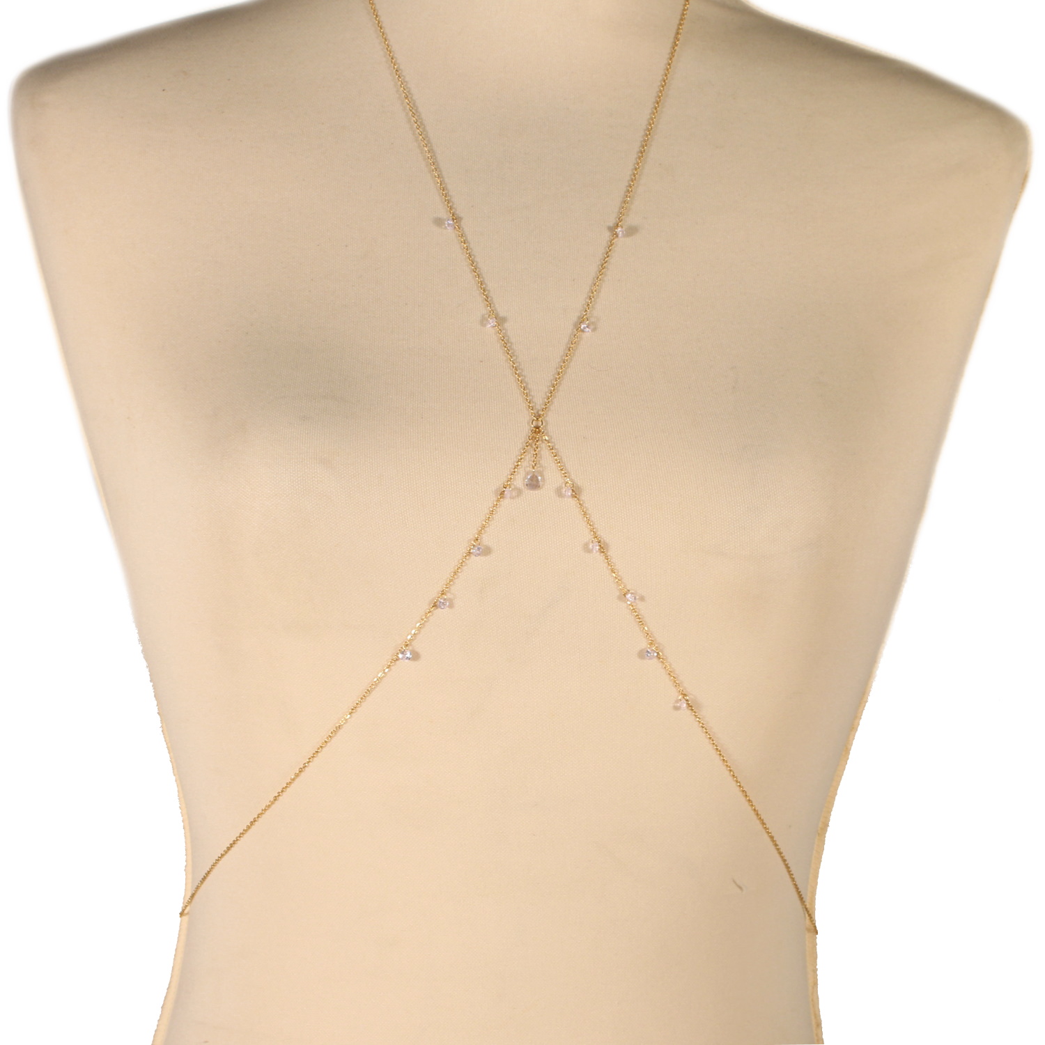 Collier chaîne de corps en acier doré avec pampilles de cristaux.