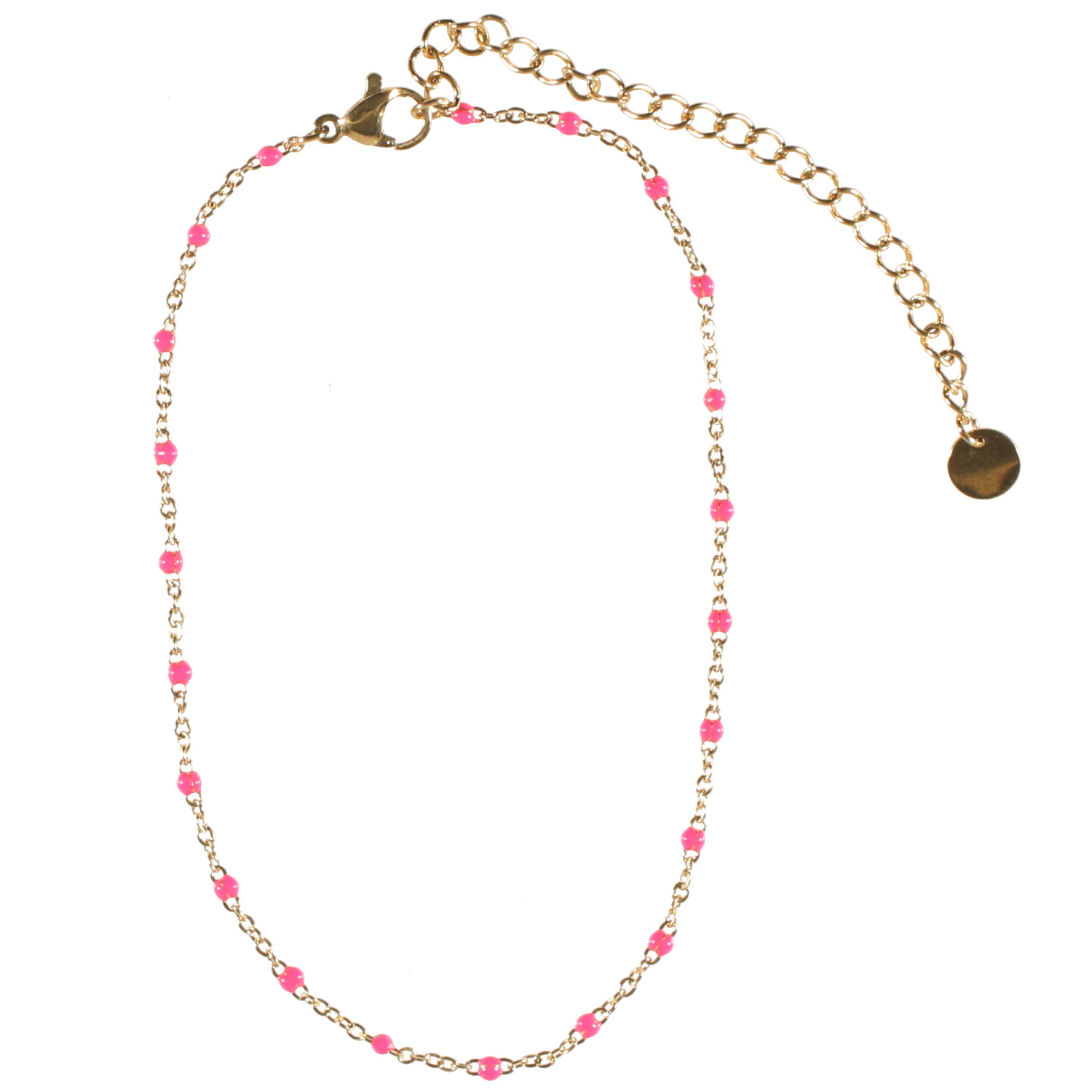 Description Bracelet chaîne de cheville composé d'une chaîne en acier doré et de perles en émail de couleur rose. Fermoir mousqueton avec 5 cm de rallonge. Cliquez sur une matière, un thème, une couleur ou une collection pour voir tous les articles associés.