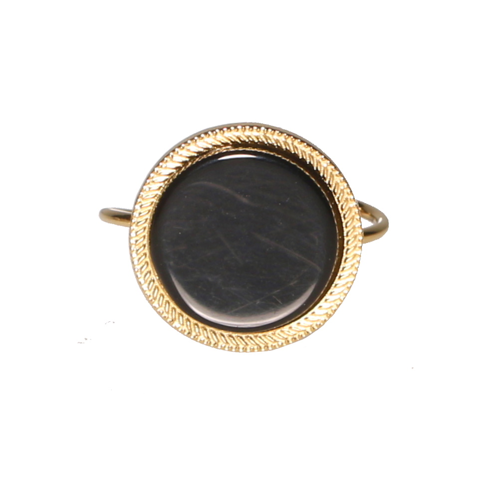 Description Bague en acier doré sertie d'une pastille de couleur noire. Taille ajustable. Cliquez sur une matière, un thème, une couleur ou une collection pour voir tous les articles associés.