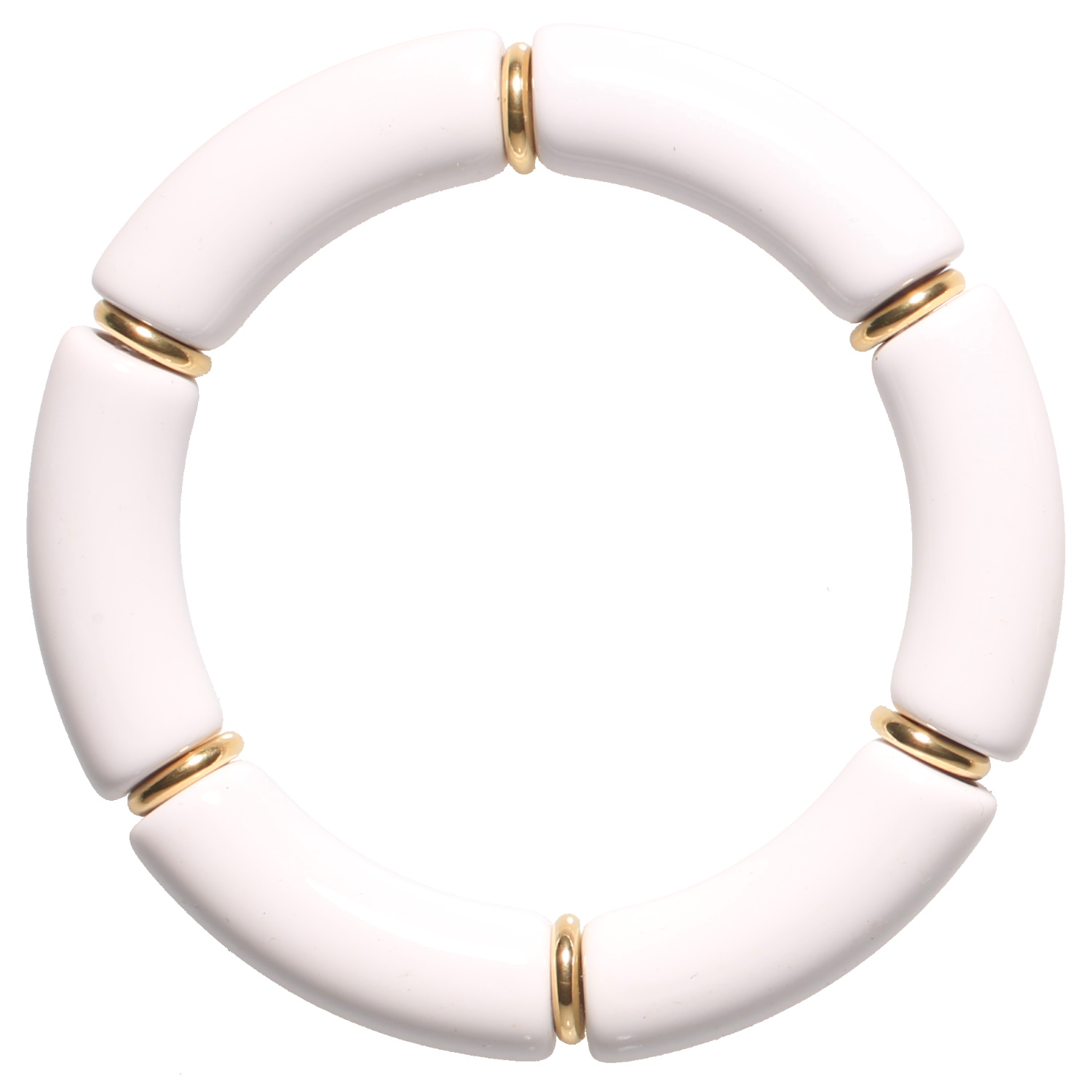 Description Bracelet fantaisie élastique composé de rondelles en acier doré et de tubes de couleur blanc. Largeur 11 mm Diamètre 55 mm [Guide des tailles] Matière(s) Acier , Plastique . L'acier utilisé dans la bijouterie existe sous plusieurs qualités. Nous utilisons principalement la qualité 316L, qualité qui est utilisée en chirurgie. Cet acier est donc inoxydable et reste très résistant. Fermoir Aucun Couleur(s) dominante(s) Blanc , Doré Public Adolescent , Adulte . Genre Femme , Fille . Saison Indémodable . Cliquez sur une matière, un thème, une couleur ou une collection pour voir tous les articles associés.