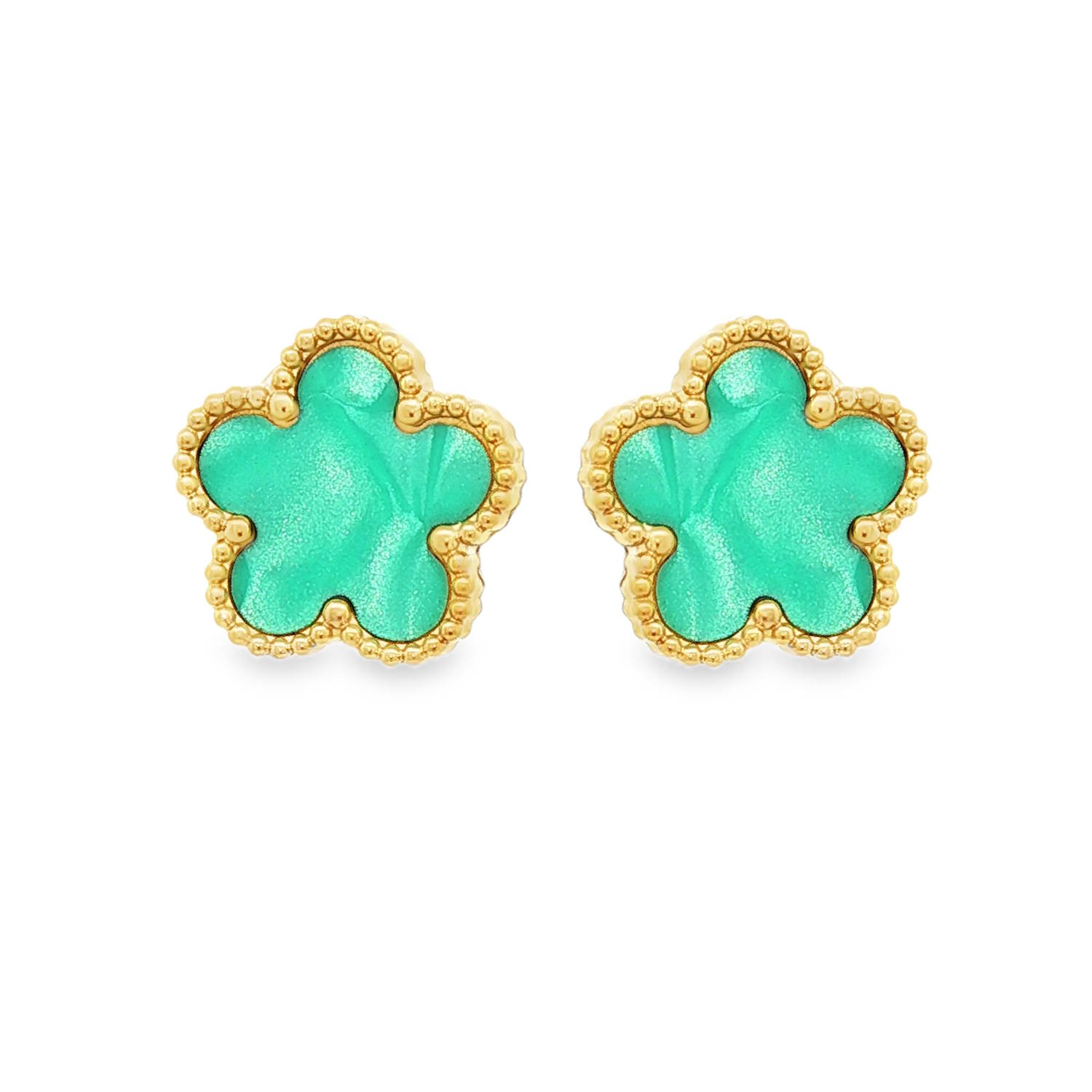 Description Ces boucles d'oreilles affichent un style à la fois frais et printanier, parfait pour apporter une touche de couleur à une tenue quotidienne. Ces boucles d'oreilles en forme de fleur à cinq pétales capturent une esthétique douce et féminine. Une pierre d'un vert turquoise vibrant, aux reflets légèrement irisés, qui attire immédiatement le regard. Largeur 13 mm Hauteur 13 mm Matière(s) Acier , Résine . L'acier utilisé dans la bijouterie existe sous plusieurs qualités. Nous utilisons principalement la qualité 316L, qualité qui est utilisée en chirurgie. Cet acier est donc inoxydable et reste très résistant. Fermoir Tiges poussettes Couleur(s) dominante(s) Bleu , Doré , Vert Public Adolescent , Adulte . Genre Femme , Fille . Saison Indémodable . Thème(s) Fleurs , Nature . Cliquez sur une matière, un thème, une couleur ou une collection pour voir tous les articles associés.