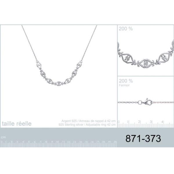 Description Collier en argent 925/000 rhodié et oxyde de zirconium. Longueur 45 cm [Guide des tailles] Largeur 8 mm Matière(s) Argent 925 rhodié , Zirconium . Afin de protéger votre bijou de l'oxydation naturelle de l'argent, il est recouvert d'une couche de rhodium (un métal rare et précieux) qui garantira sa brillance dans le temps et préviendra les risques d'allergie. Notez cependant, que le bijou est alors d'une teinte plus grisée et moins brillante que l'argent non rhodié. Poids d'argent 6,3 gramme(s) Fermoir Mousqueton Couleur(s) dominante(s) Argenté Public Adulte . Genre Femme . Saison Indémodable . Cliquez sur une matière, un thème, une couleur ou une collection pour voir tous les articles associés.