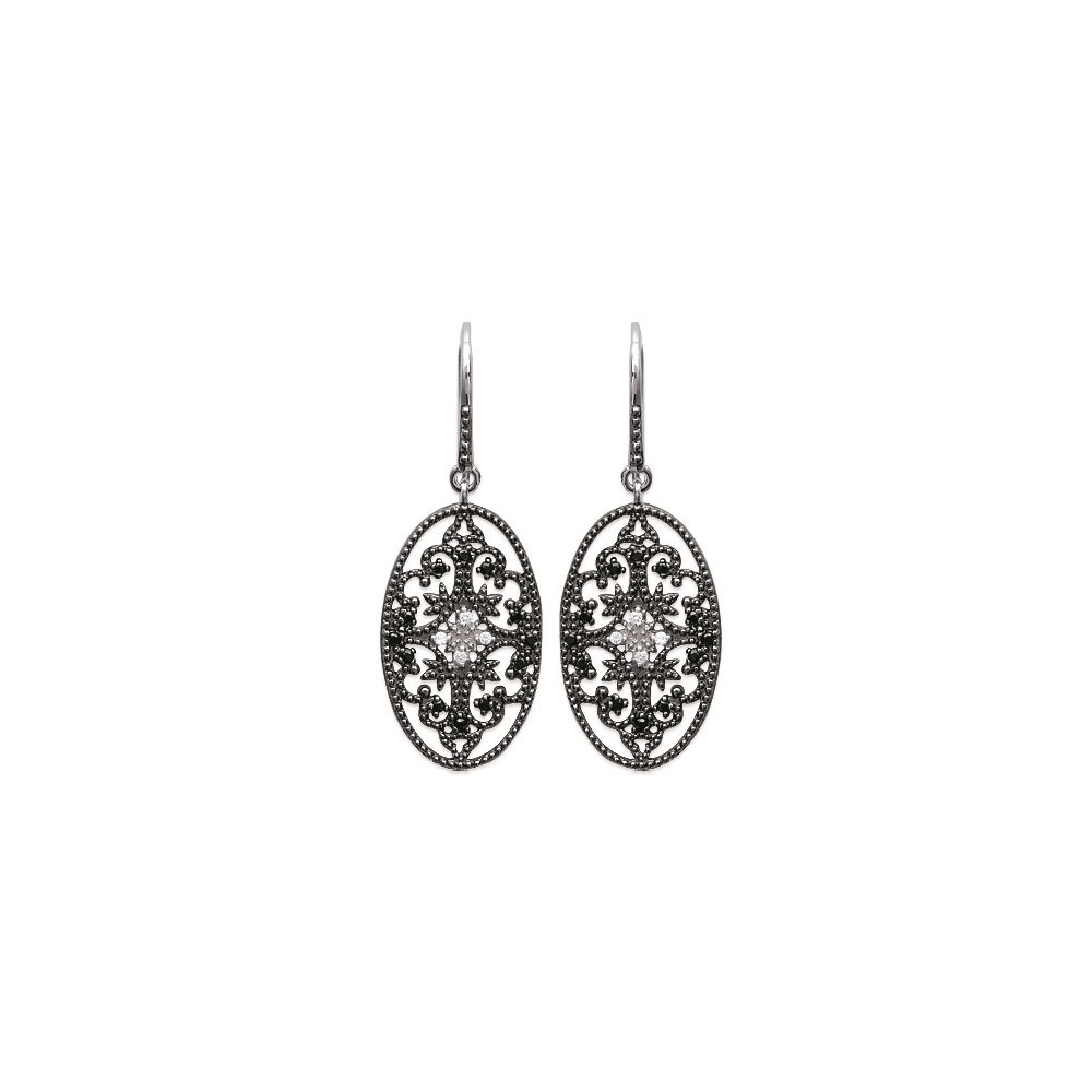 Boucles d'oreilles en argent 925/000 rhodié, oxyde de zirconium et ruthénium.