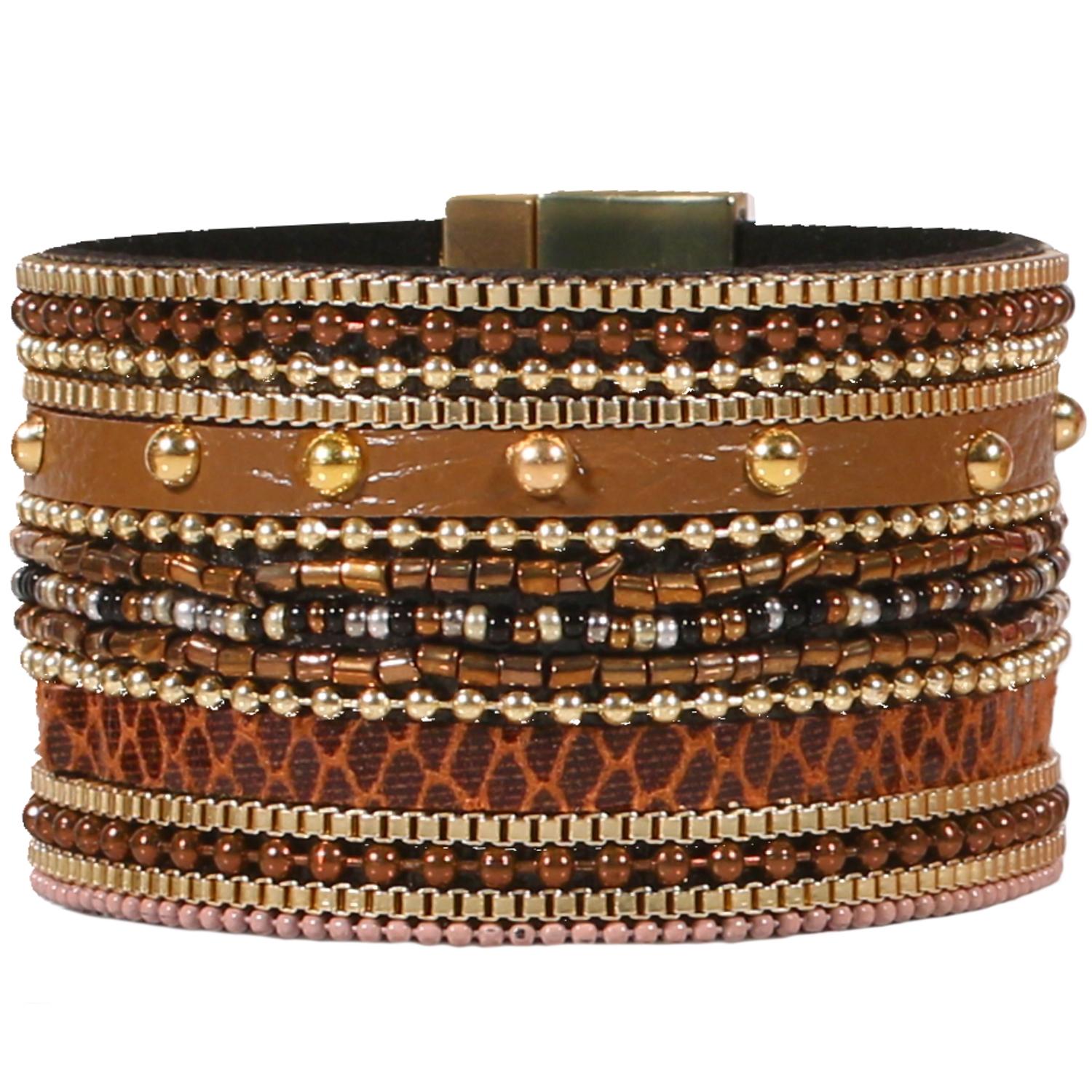 Description Bracelet fantaisie en métal doré, métal peint, suédine et résine. Cliquez sur une matière, un thème, une couleur ou une collection pour voir tous les articles associés.