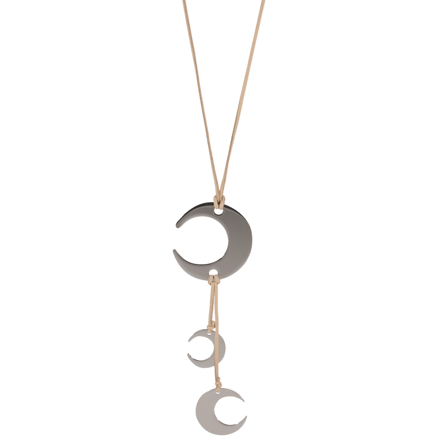 Collier sautoir en suédine et Croissants de Lune en acier argenté.