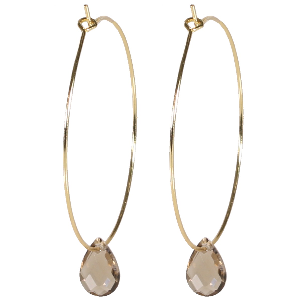 Boucles d'oreilles créoles en métal doré et pierres forme goutte.