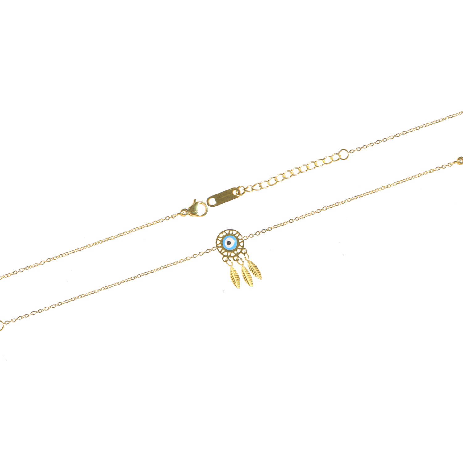 Bracelet avec attrape rêve en acier doré et œil en émail.