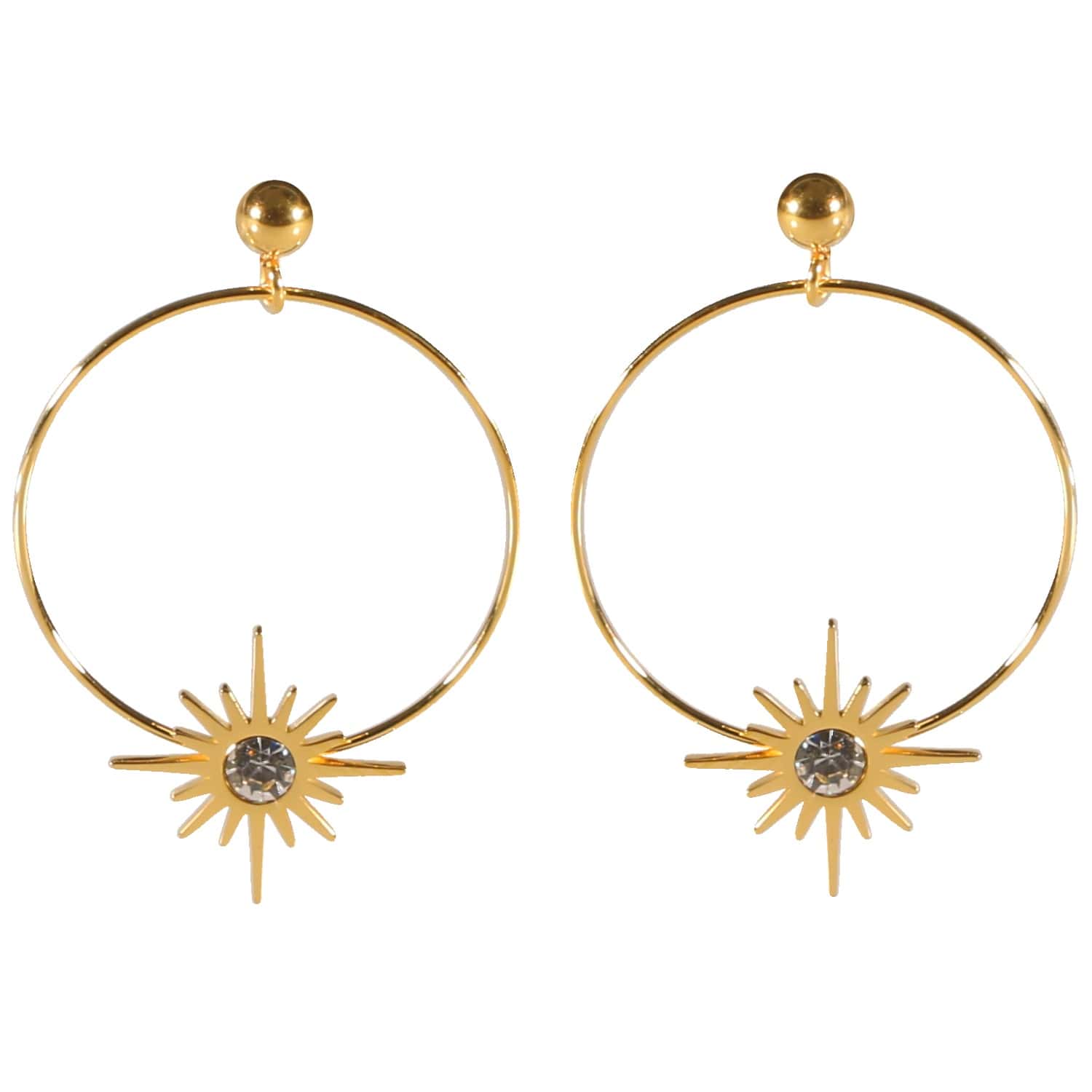 Description Boucles d'oreilles pendantes avec cercles et étoiles en acier doré et cristaux en verre. Largeur 25 mm Hauteur 40 mm Matière(s) Acier , Verre . L'acier utilisé dans la bijouterie existe sous plusieurs qualités. Nous utilisons principalement la qualité 316L, qualité qui est utilisée en chirurgie. Cet acier est donc inoxydable et reste très résistant. Fermoir Tiges poussettes Couleur(s) dominante(s) Doré Public Adolescent , Adulte . Genre Femme , Fille . Saison Indémodable . Thème(s) Nature . Cliquez sur une matière, un thème, une couleur ou une collection pour voir tous les articles associés.