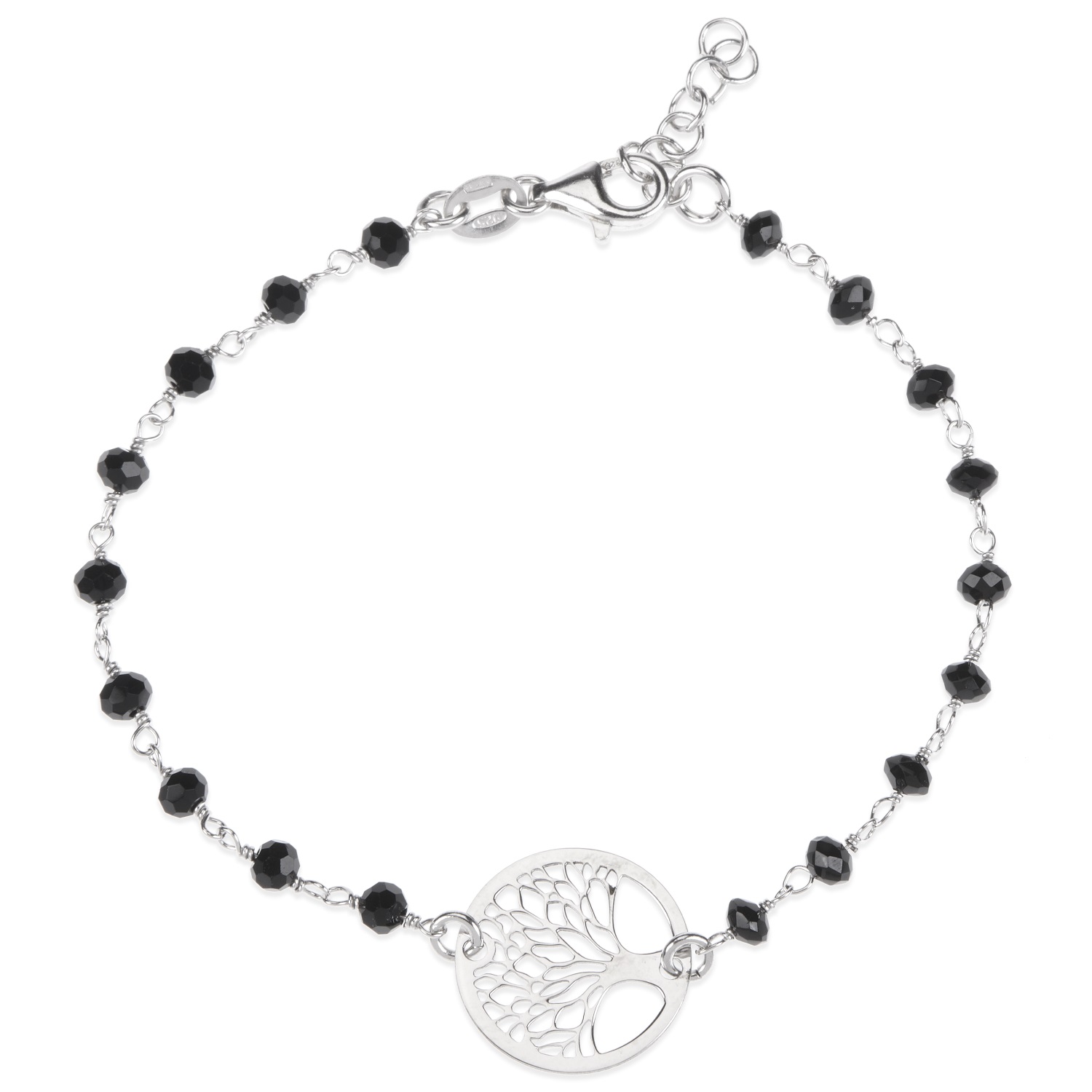 Bracelet avec arbre de vie en argent 925/000 rhodié et perles de couleur noire.