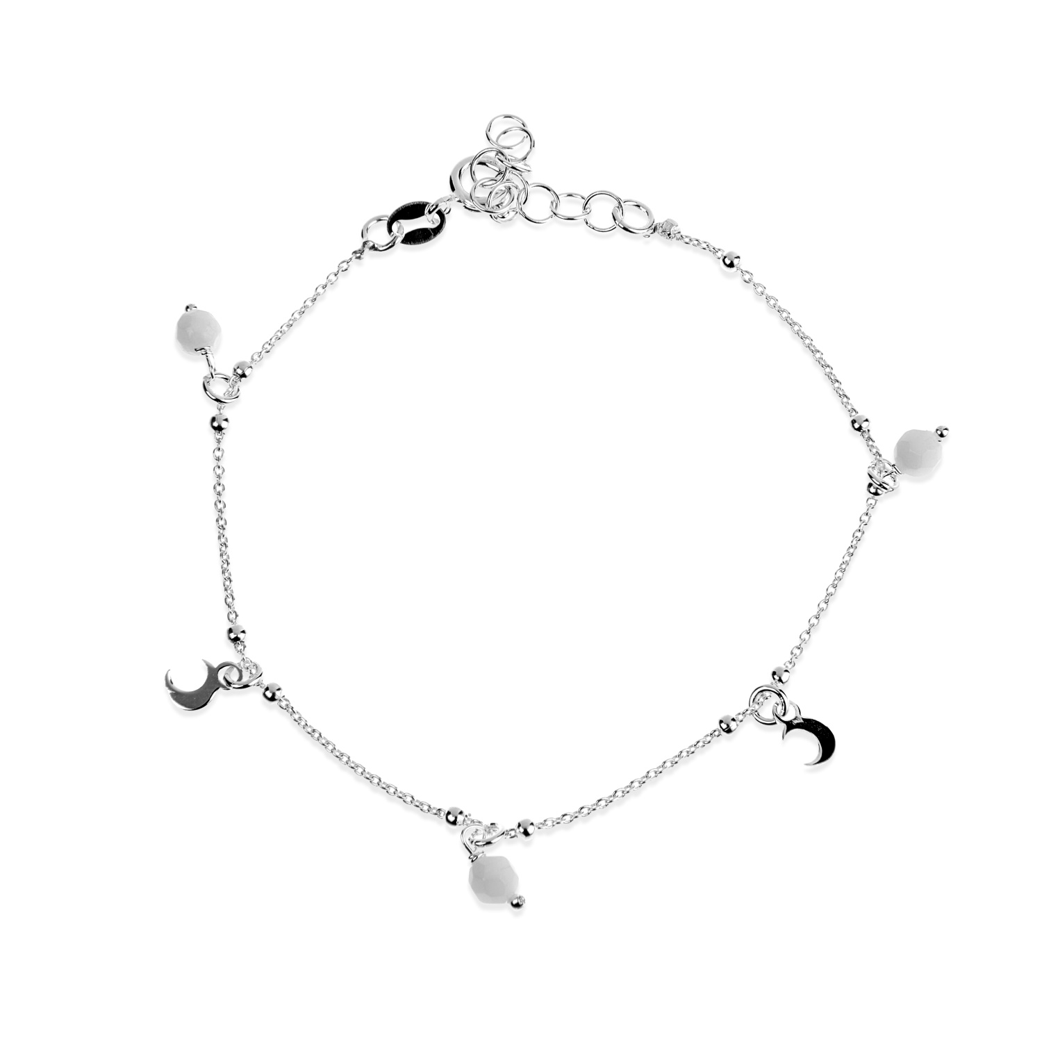 Bracelet avec pampilles croissants de lune en argent 925/000 rhodié et pampilles de perles de couleur blanche.