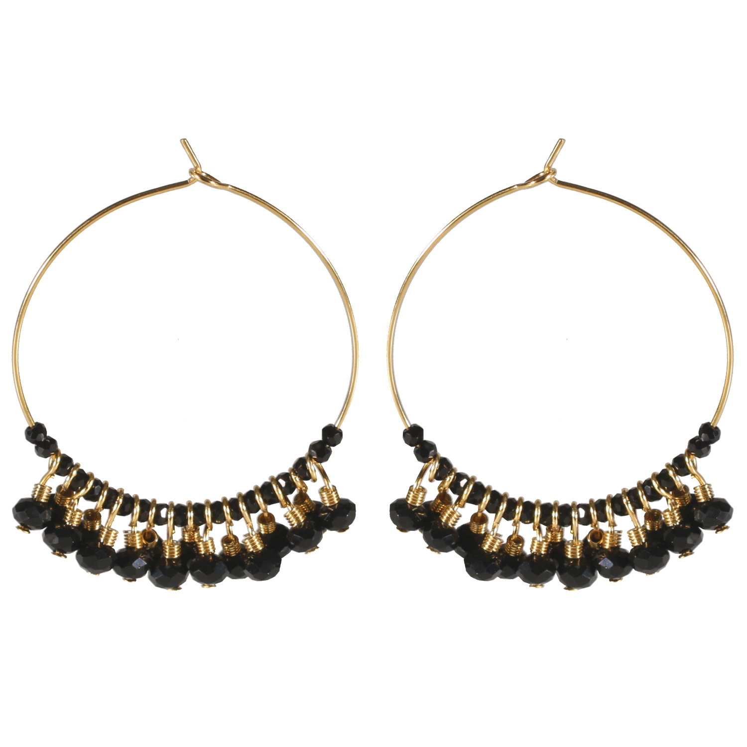 Boucles d'oreilles créoles en acier 316L doré et pampilles de perles de couleur noire.
