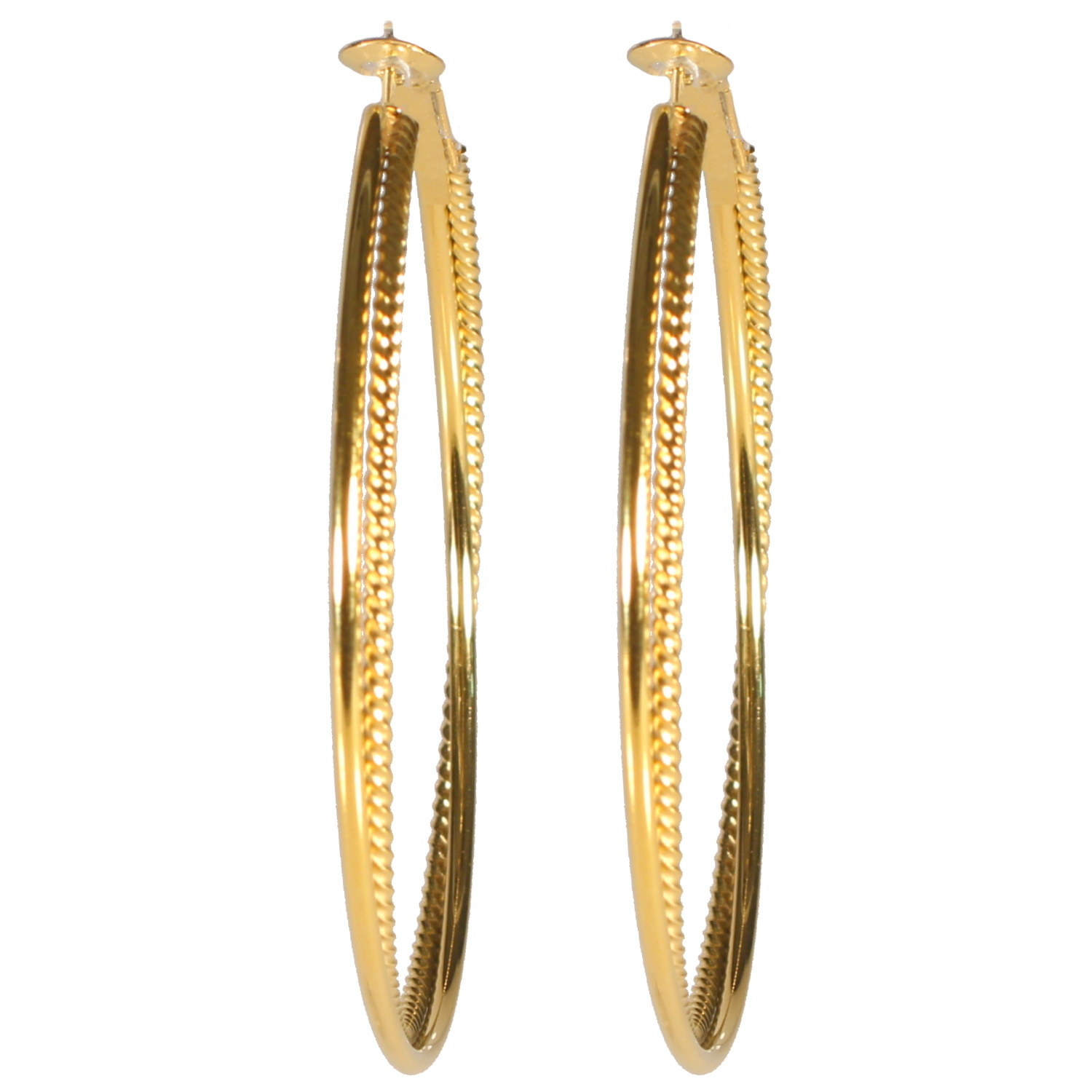 Description Boucles d'oreilles créoles en acier 316L doré. Largeur 2.5 mm Diamètre 45 mm [Guide des tailles] Matière(s) Acier . L'acier utilisé dans la bijouterie existe sous plusieurs qualités. Nous utilisons principalement la qualité 316L, qualité qui est utilisée en chirurgie. Cet acier est donc inoxydable et reste très résistant. Fermoir Autre Couleur(s) dominante(s) Doré Public Adolescent , Adulte . Genre Femme , Fille . Saison Indémodable . Cliquez sur une matière, un thème, une couleur ou une collection pour voir tous les articles associés.
