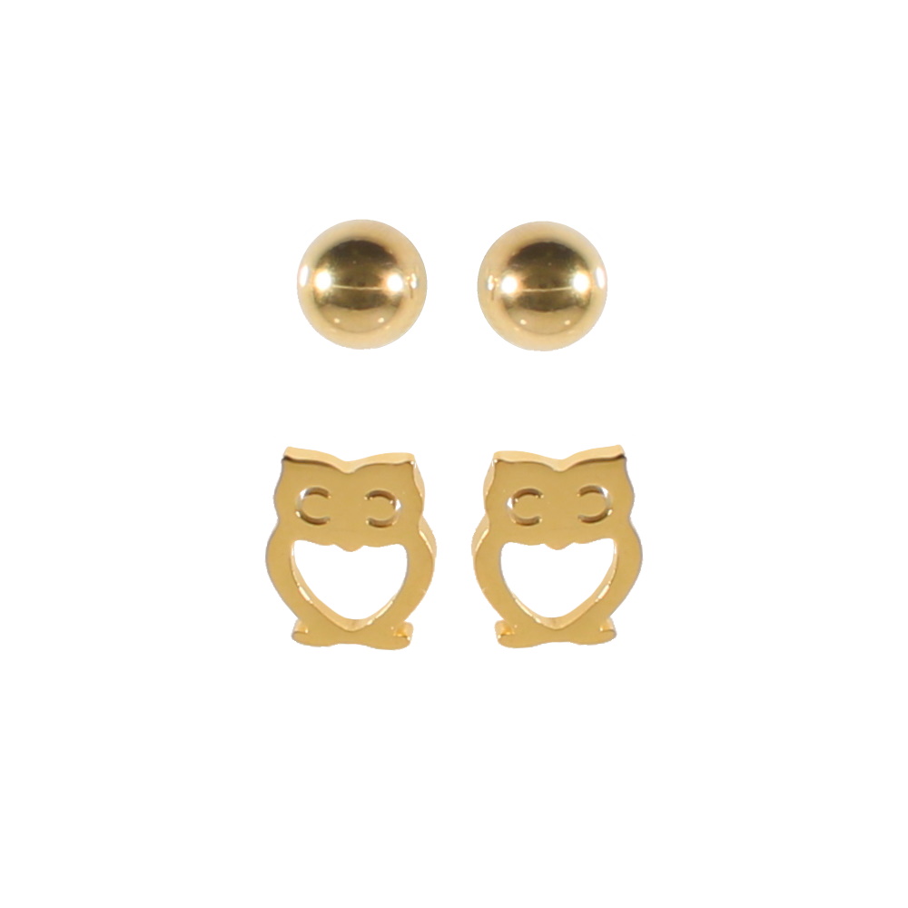 Description Lot de 2 paires de boucles d'oreilles puces en acier doré, l'une en forme de boule et l'autre en forme de hibou. Largeur 8 mm Hauteur 10 mm Diamètre 6 mm Matière(s) Acier . L'acier utilisé dans la bijouterie existe sous plusieurs qualités. Nous utilisons principalement la qualité 316L, qualité qui est utilisée en chirurgie. Cet acier est donc inoxydable et reste très résistant. Fermoir Tiges poussettes Couleur(s) dominante(s) Doré Public Adolescent , Adulte . Genre Femme , Fille . Saison Indémodable . Thème(s) Animaux , Oiseaux . Cliquez sur une matière, un thème, une couleur ou une collection pour voir tous les articles associés.