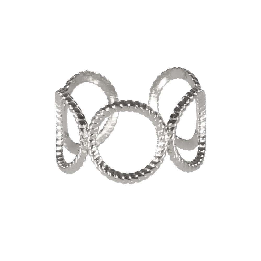 Description Bague composée de cercles en acier argenté. Taille ajustable. Largeur 11 mm Matière(s) Acier . L'acier utilisé dans la bijouterie existe sous plusieurs qualités. Nous utilisons principalement la qualité 316L, qualité qui est utilisée en chirurgie. Cet acier est donc inoxydable et reste très résistant. Fermoir Aucun Couleur(s) dominante(s) Argenté Public Adolescent , Adulte . Genre Femme , Fille . Saison Indémodable . Cliquez sur une matière, un thème, une couleur ou une collection pour voir tous les articles associés.