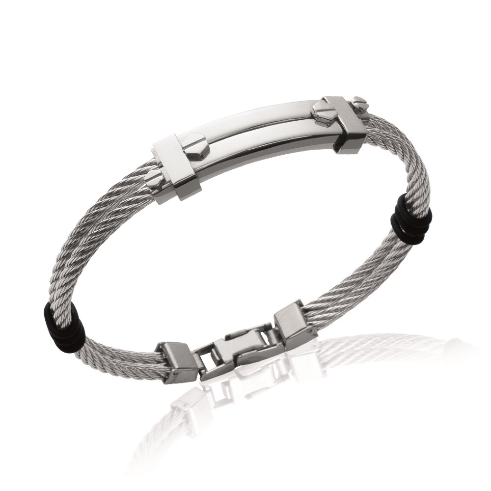 Description Bracelet en acier et câble. Largeur 10 mm Diamètre 66 mm [Guide des tailles] Matière(s) Acier . L'acier utilisé dans la bijouterie existe sous plusieurs qualités. Nous utilisons principalement la qualité 316L, qualité qui est utilisée en chirurgie. Cet acier est donc inoxydable et reste très résistant. Fermoir Plat Couleur(s) dominante(s) Argenté Public Adulte . Genre Homme . Saison Indémodable . Cliquez sur une matière, un thème, une couleur ou une collection pour voir tous les articles associés.