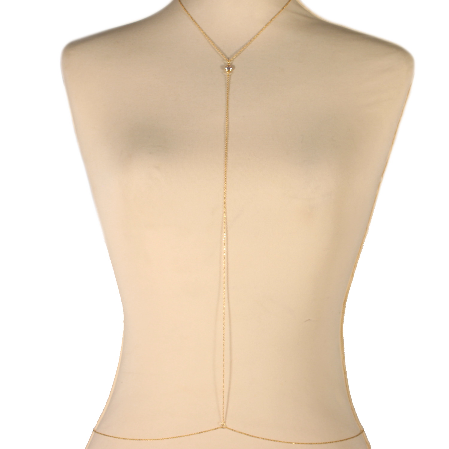 Collier chaîne de corps en acier doré avec un cristal serti clos.