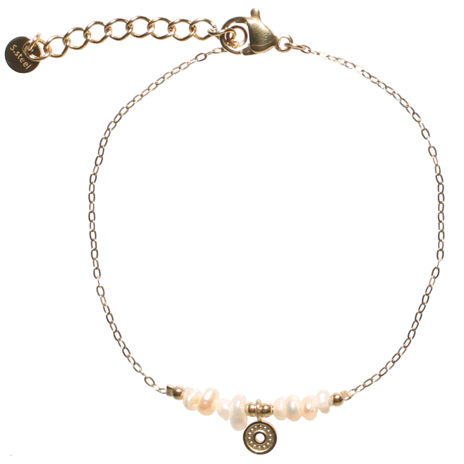 Description Bracelet composé d'une chaîne avec une pastille ronde en acier doré et de perles de nacre. Fermoir mousqueton avec 3 cm de rallonge. Longueur 16+3 cm [Guide des tailles] Largeur 8 mm Matière(s) Acier , Nacre . L'acier utilisé dans la bijouterie existe sous plusieurs qualités. Nous utilisons principalement la qualité 316L, qualité qui est utilisée en chirurgie. Cet acier est donc inoxydable et reste très résistant. Fermoir Mousqueton Couleur(s) dominante(s) Blanc , Doré Public Adolescent , Adulte . Genre Femme , Fille . Saison Indémodable . Cliquez sur une matière, un thème, une couleur ou une collection pour voir tous les articles associés.