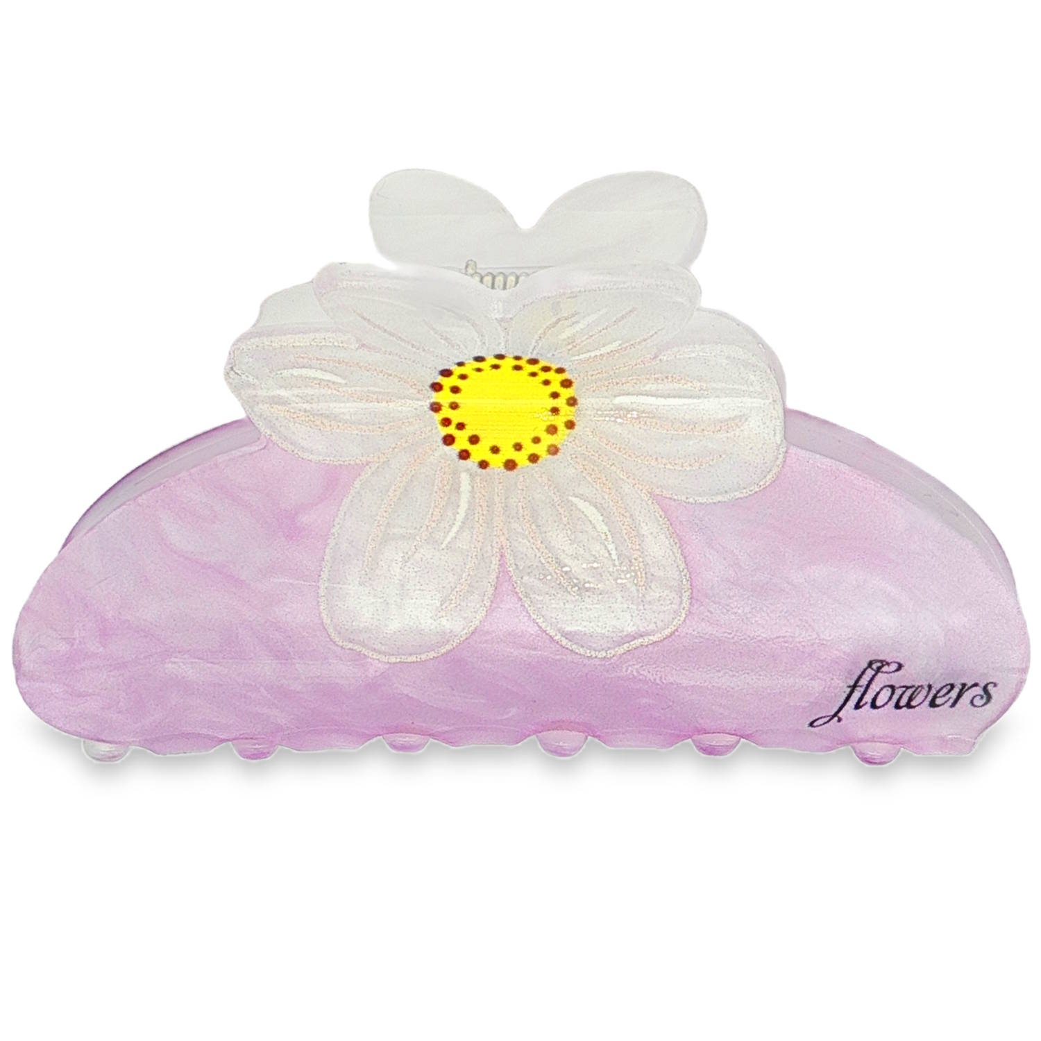Description Cette pince à cheveux dégage un style printanier et rafraîchissant. La base présente un magnifique effet marbré violet pastel, offrant des nuances de mauve et de blanc qui captent la lumière. Elle est ornée d'une superbe marguerite centrale blanche aux reflets irisés, avec un cœur jaune vif parsemé de petits points contrastés pour un effet réaliste. Cliquez sur une matière, un thème, une couleur ou une collection pour voir tous les articles associés.