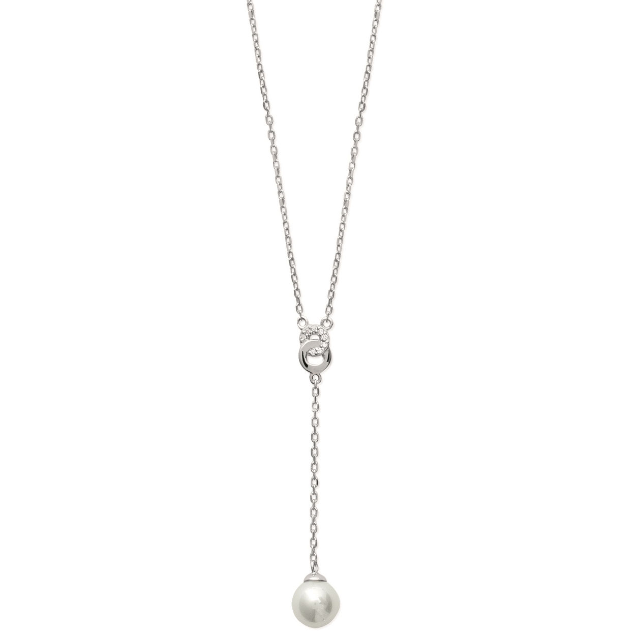 Collier en argent 925/000 rhodié, oxyde de zirconium et perle d'imitation.