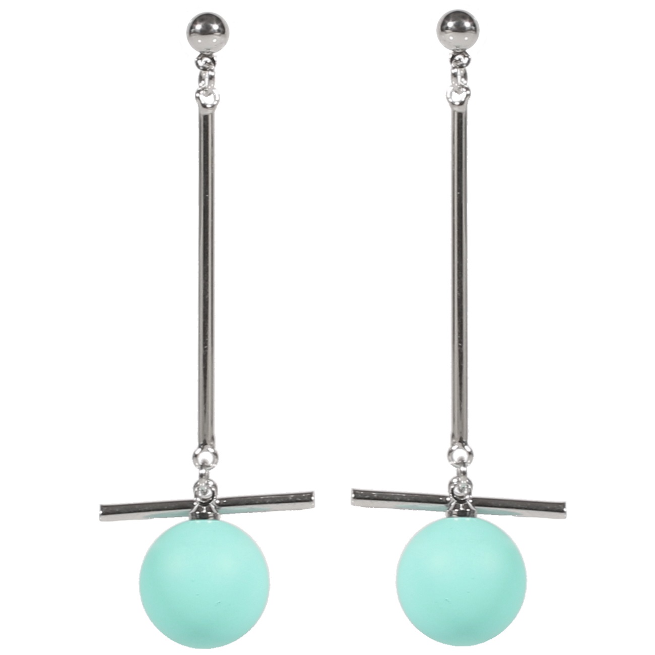Boucles d'oreilles fantaisie en métal argenté et pierre synthétique.