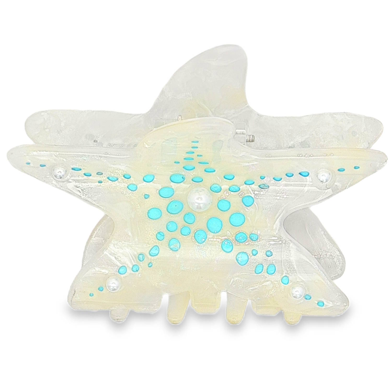 Description Plongez dans un univers féerique avec cette pince à cheveux unique, conçue pour celles qui souhaitent ajouter une touche de magie marine à leur coiffure. Une silhouette d'étoile de mer stylisée aux courbes douces, évoquant la beauté des fonds marins. Sa structure en acétate translucide présente des reflets irisés et pailletés, rappelant la brillance de la nacre ou de l'écume de mer. Le corps de l'étoile est orné de délicates pastilles d'un bleu turquoise éclatant et de petites perles nacrées incrustées, créant un contraste saisissant et raffiné. Cliquez sur une matière, un thème, une couleur ou une collection pour voir tous les articles associés.