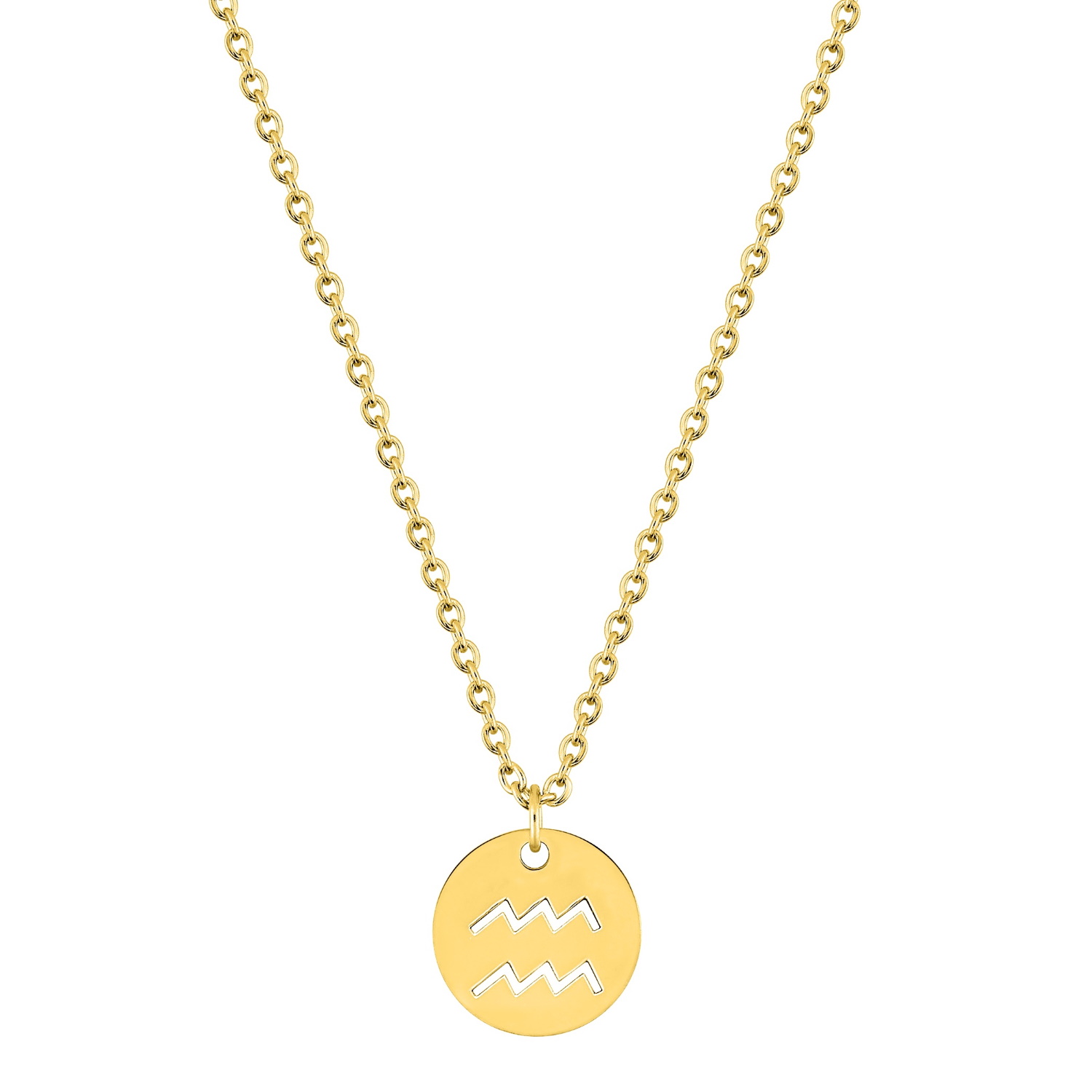 Description Magnifique collier chaîne en acier doré avec un pendentif rond gravé du signe astrologique du verseau. Fermoir mousqueton avec 5 cm de rallonge. Longueur 40+5 cm [Guide des tailles] Diamètre 12 mm Matière(s) Acier . L'acier utilisé dans la bijouterie existe sous plusieurs qualités. Nous utilisons principalement la qualité 316L, qualité qui est utilisée en chirurgie. Cet acier est donc inoxydable et reste très résistant. Fermoir Mousqueton Couleur(s) dominante(s) Doré Public Adolescent , Adulte . Genre Femme , Fille . Saison Indémodable . Thème(s) Astrologie . Cliquez sur une matière, un thème, une couleur ou une collection pour voir tous les articles associés.