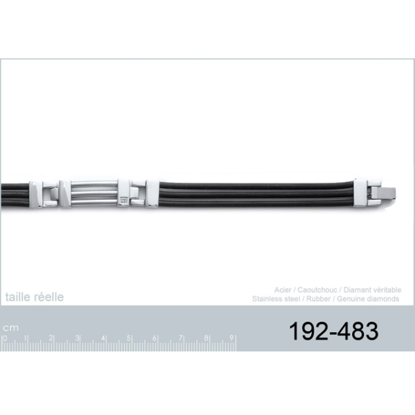 Bracelet en acier, oxyde de zirconium et caoutchouc.