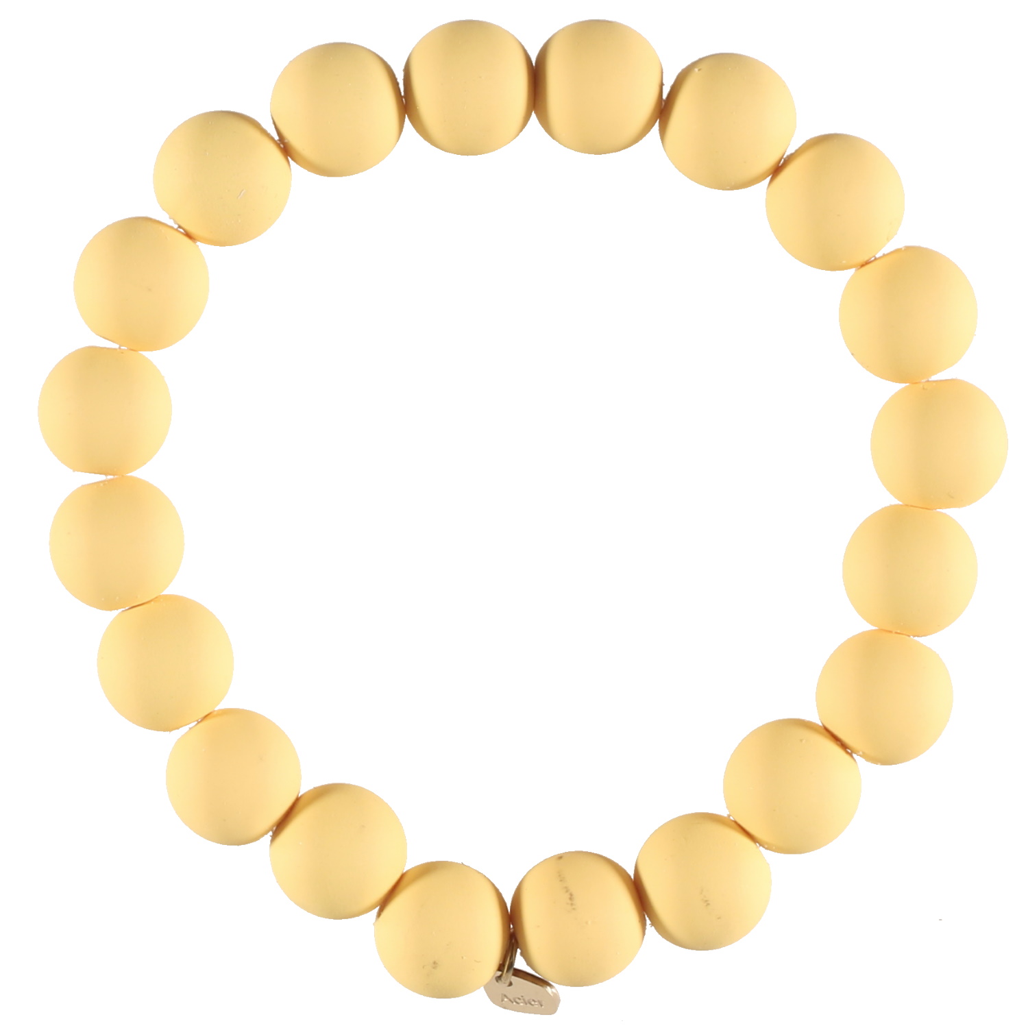Bracelet élastique composé d'un fil de nylon et de perles de couleur jaune.